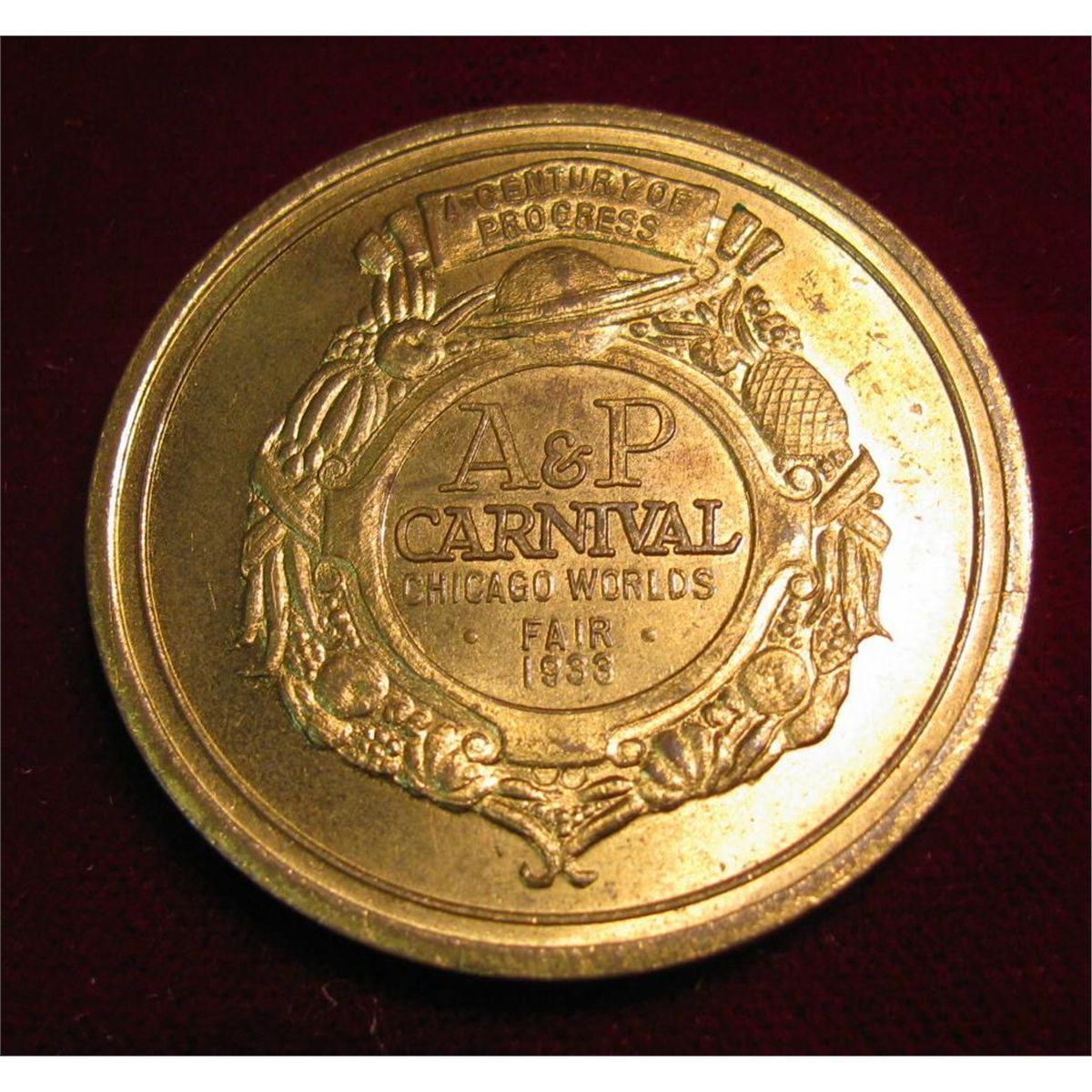 72. "A Century of Progress A & P Carnival Chicago World's Fair 1933 Medal. Cheerio the Cow on the obverse. BU.