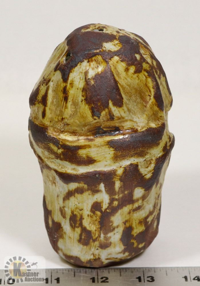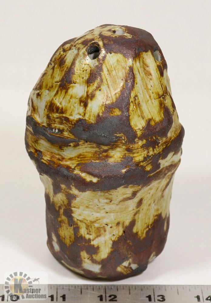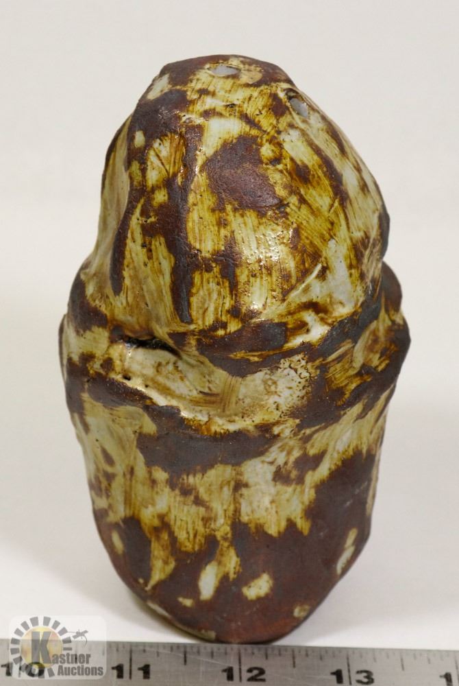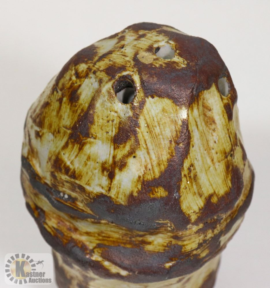 72) RUSTIC WHITE GLAZE MUSHROOM VASE, UNSIGNED,