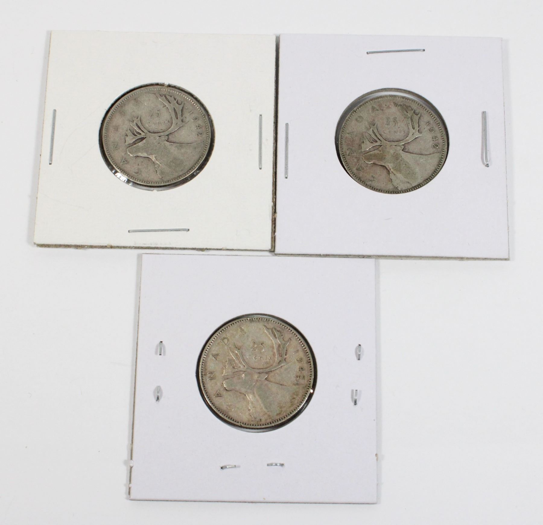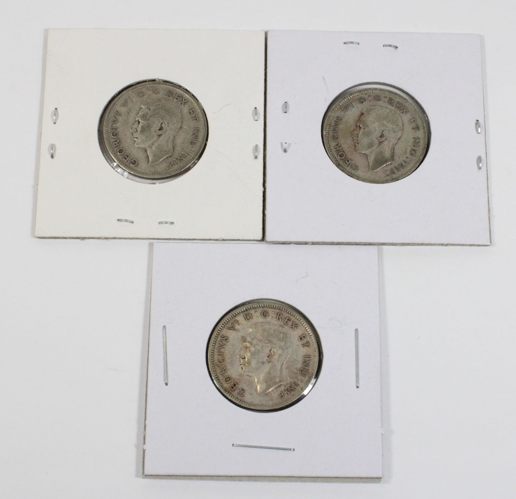 LOT OF 3 WW2 WORLD WAR TWO ERA KING GEORGE VI CANADA CANADIAN SILVER COIN CURRENCY 1900'S