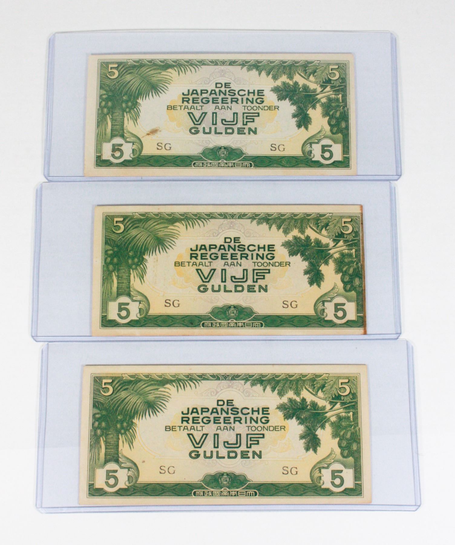DUTCH EAST INDIES HALF GULDEN WORLD WAR TWO WW2 AXIS FORCES OCCUPATION MONEY JAPANESE EMPIRE LOT OF 3