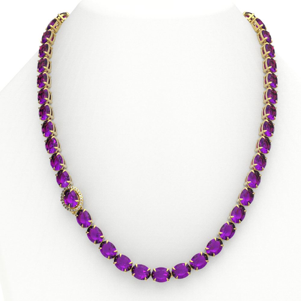 REF-281H8R - SKU: 23451 ---- 72 ctw Amethyst & VS/SI Diamond Micro Pave Necklace 14k Yellow Gold