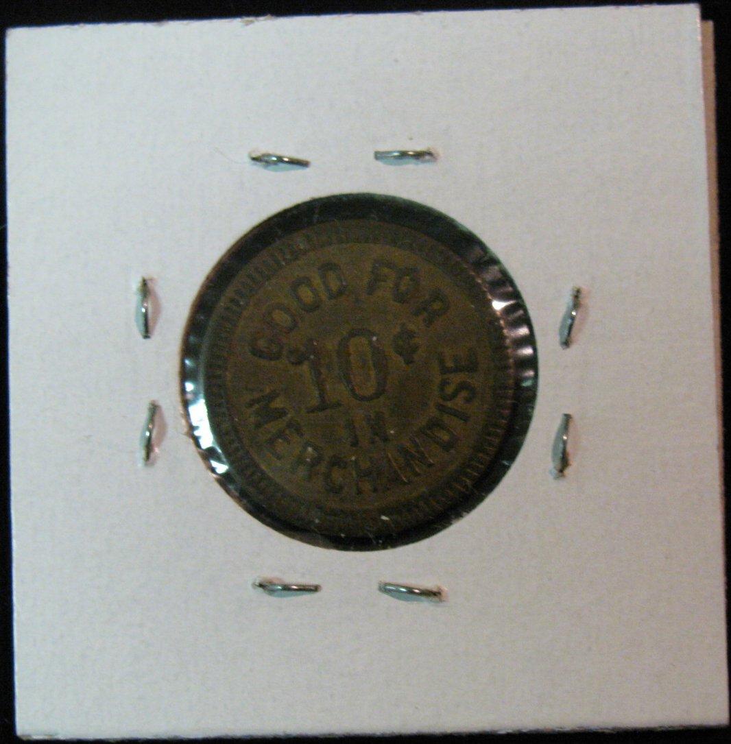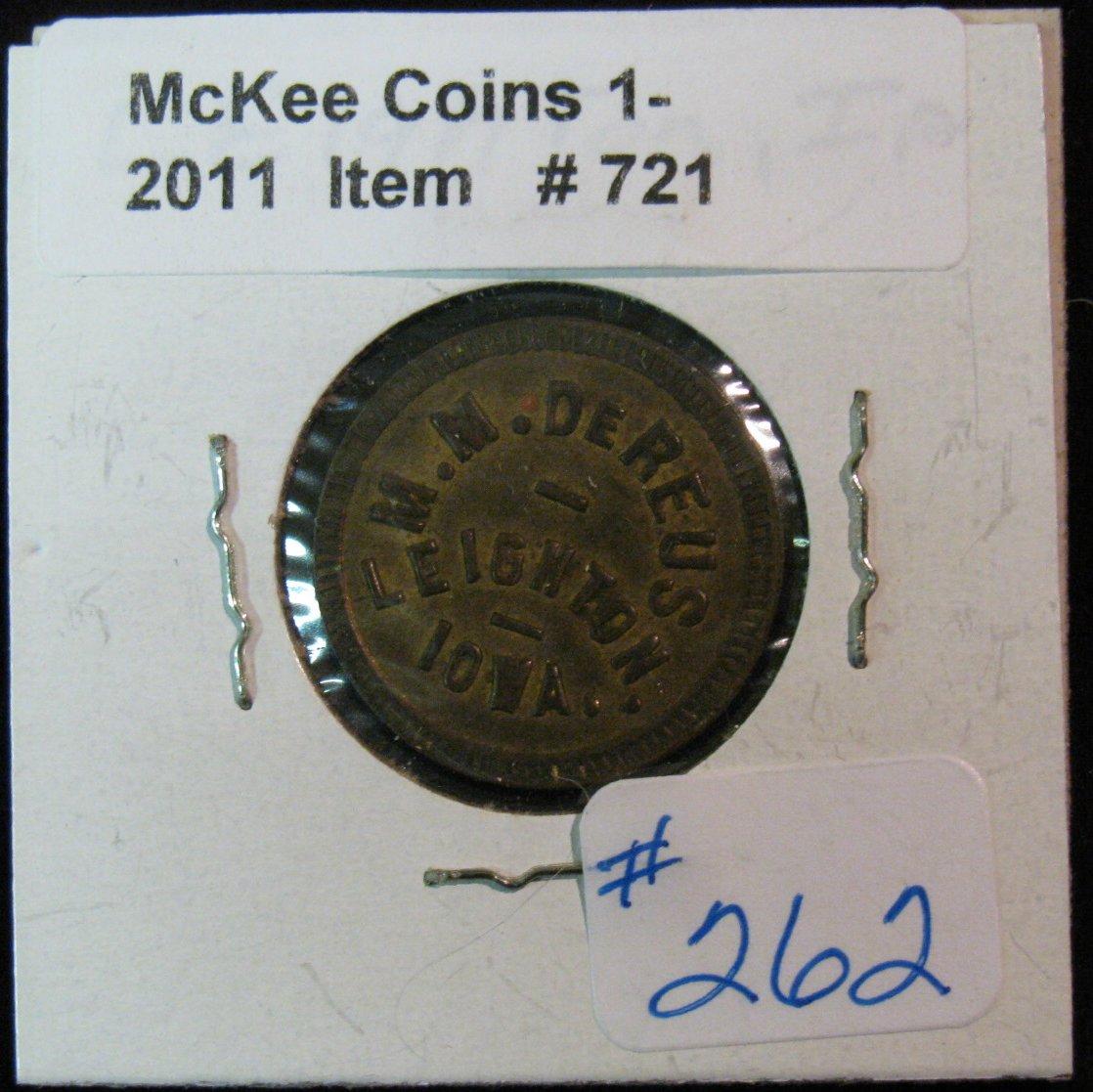721. "M.M. De Reus/Leighton,/Iowa", , "Good For/10c/In/Merchandise"