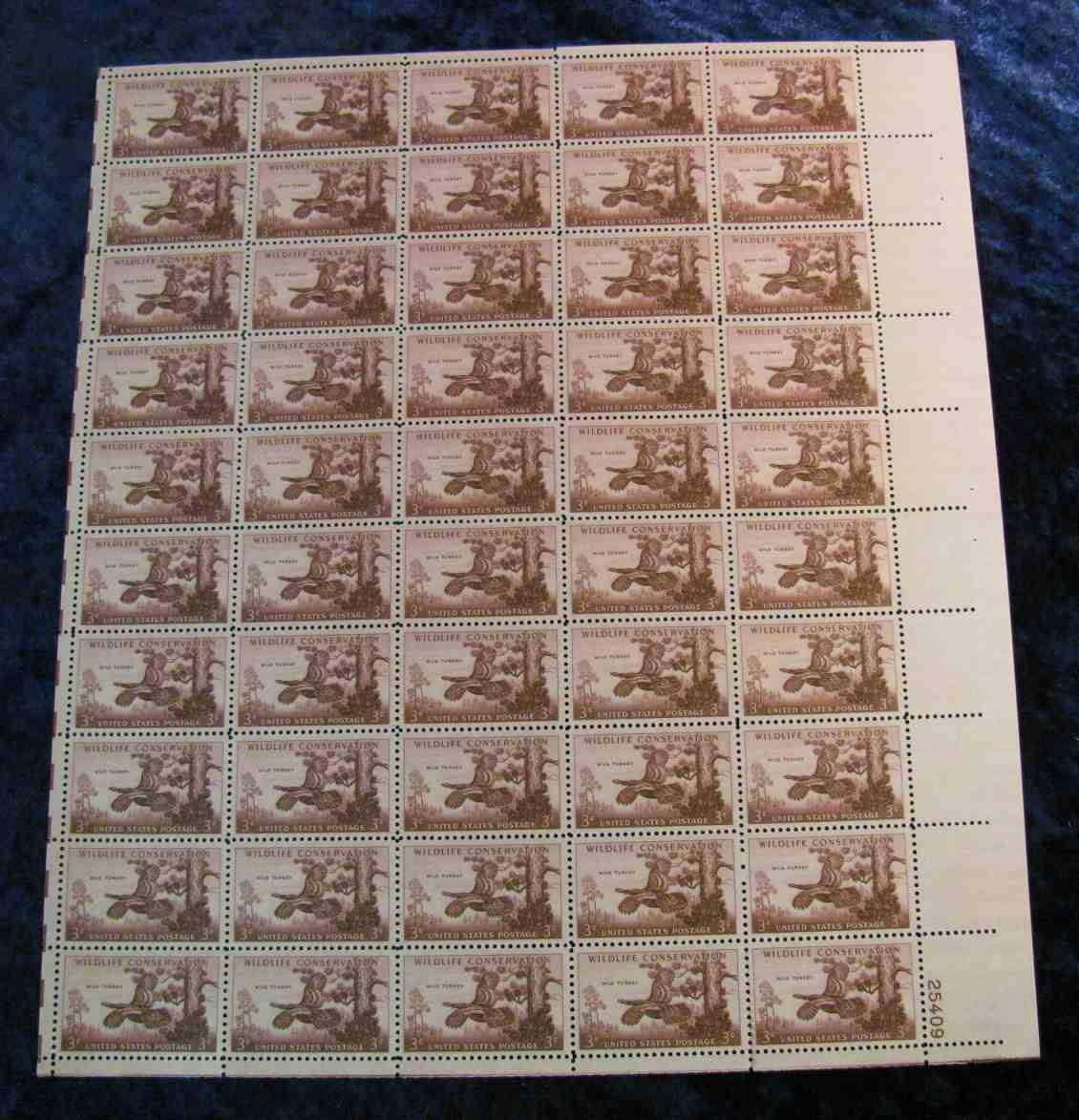 722. Original Mint Sheet of Wildlife Conservation Wild Turkey .03c Stamps.