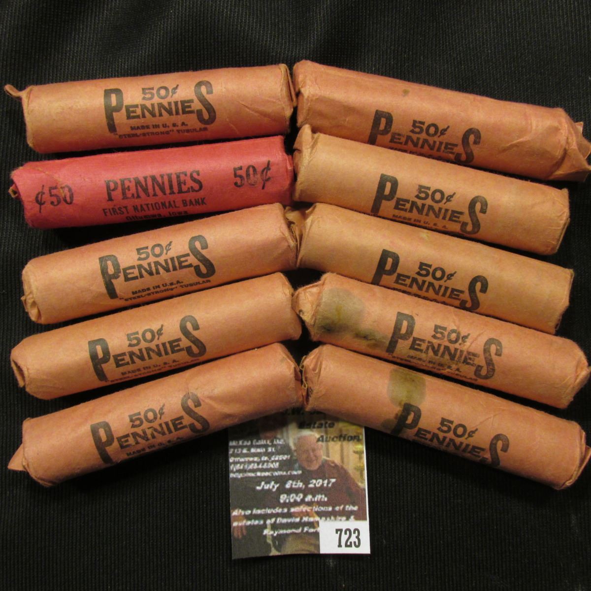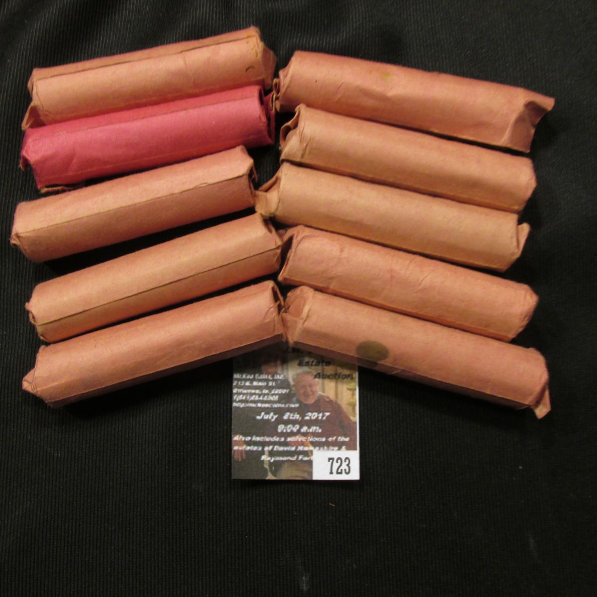 723.(10) Rolls of completely unchecked by us Cents, may include an occasional Canadian Cent or 'Memorials', but appears to be mostly 'Wheat Backs'.