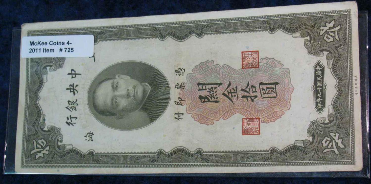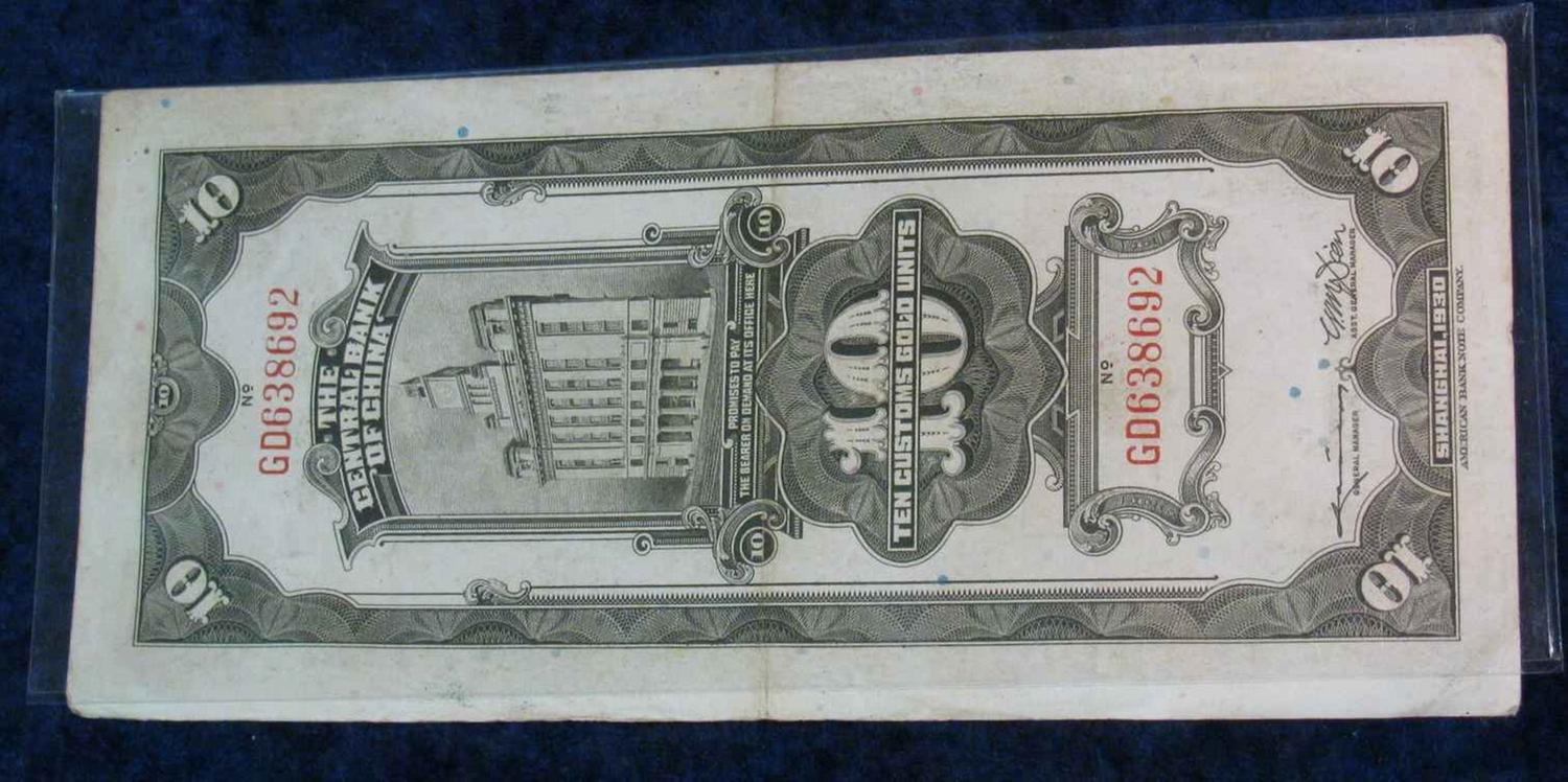 725. 1930 Shanghai, China 10 Customs Gold Units Bank Note. VF.