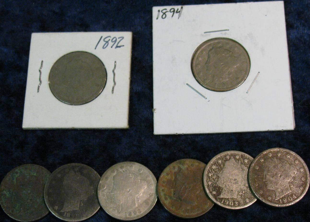725. (8) Old U.S. Liberty Head "V" Nickels. Circ.