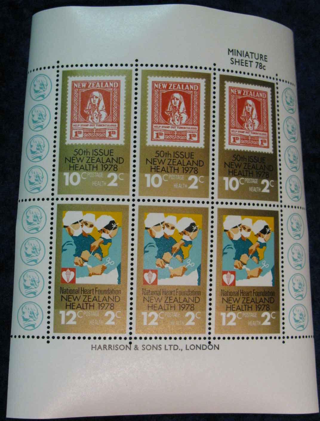 726. 1978 50th Issue New Zealand Health Miniature Sheet .78c Stamps. Mint. Uncancelled.