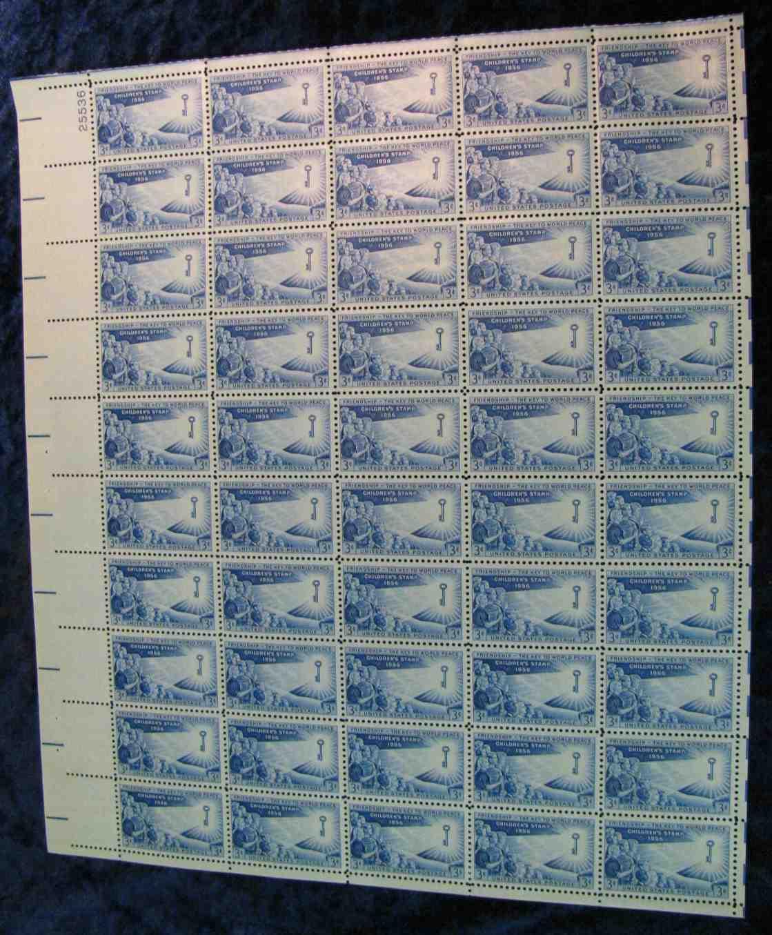 726. Original Mint Sheet of 1956 Children's Stamp .03c each times 50.