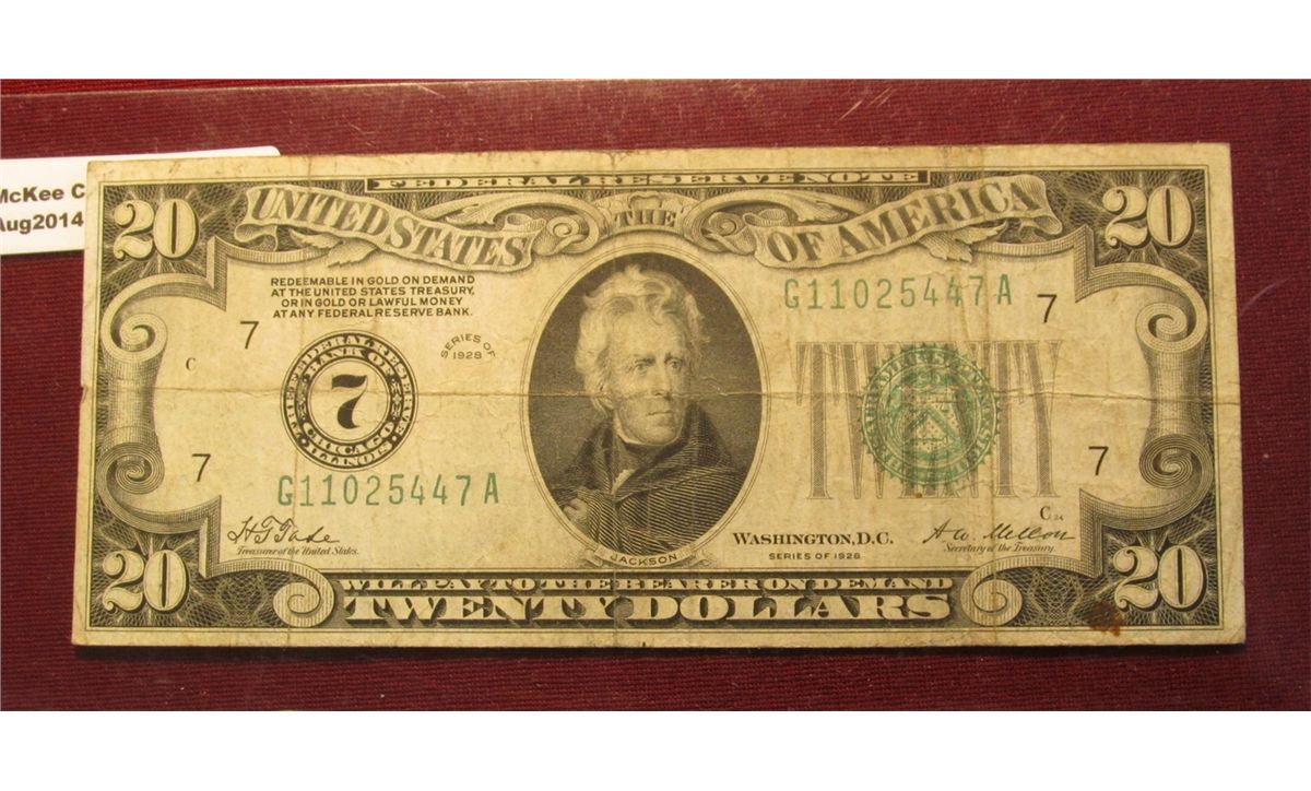 728. Series 1928 $20 Federal Reserve Note. Chicago, Illinois. "Redeemable in Gold on Demand at the U