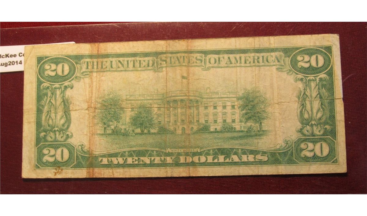 728. Series 1928 $20 Federal Reserve Note. Chicago, Illinois. "Redeemable in Gold on Demand at the United States Treasury, or In Gold or Lawful Money at Any Federal Reserve Bank". Signed H.T. Tate and A.W.Mellon. VG.