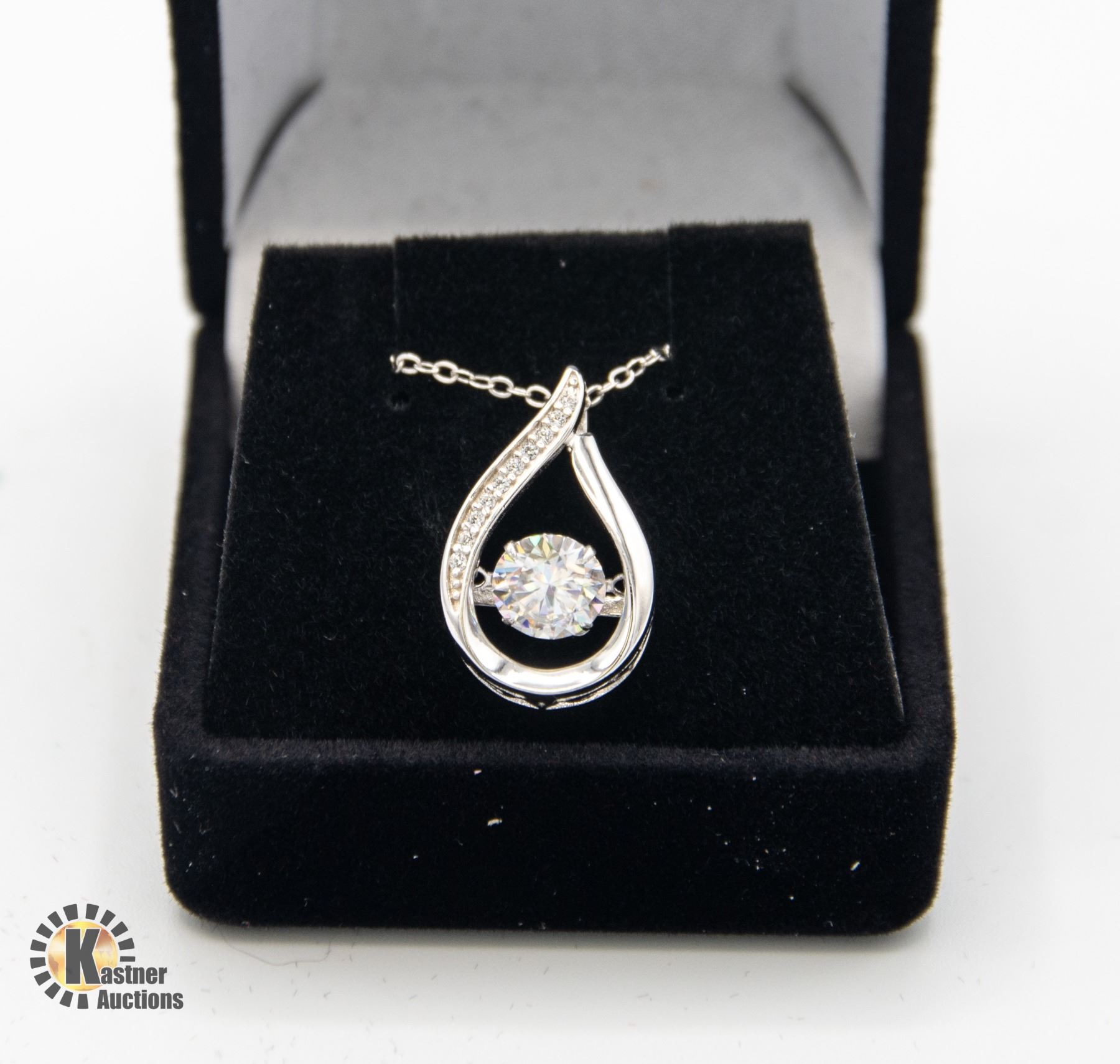 CUT MOISSANITE STONE VVS D COLOR SET IN FLOATING CENTER OF TEAR SHAPED SET IN 925 SILVER PENDANT RETAIL VALUE $750.00 **ALL ITEMS MUST BE REMOVED BY 5PM SATURDAY, OCTOBER 12TH 2024. ALL REMAINING ITEMS WILL BE SUBJECT TO A $6.00 PER DAY STORAGE CHARGE. ANY ITEMS REMAINING AFTER MONDAY, OCTOBER 27TH 2024 WILL BE CONSIDERED FORFEITED. NO REFUNDS WILL BE ISSUED FOR FORFEITED ITEMS. TO SCHEDULE A PICK UP APPOINTMENT CLICK HERE