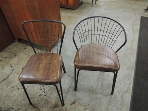 VINTAGE 72X35 MID-CENTURY MODERN WROUGHT IRON DINING TABLE. 4 WROUGHT IRON CHAIRS, 2 WROUGHT IRON CAPTAIN CHAIRS, 2 - 12" INSERT LEAFS. AS SHOWN. VIEW PICTURE FOR DETAIL.