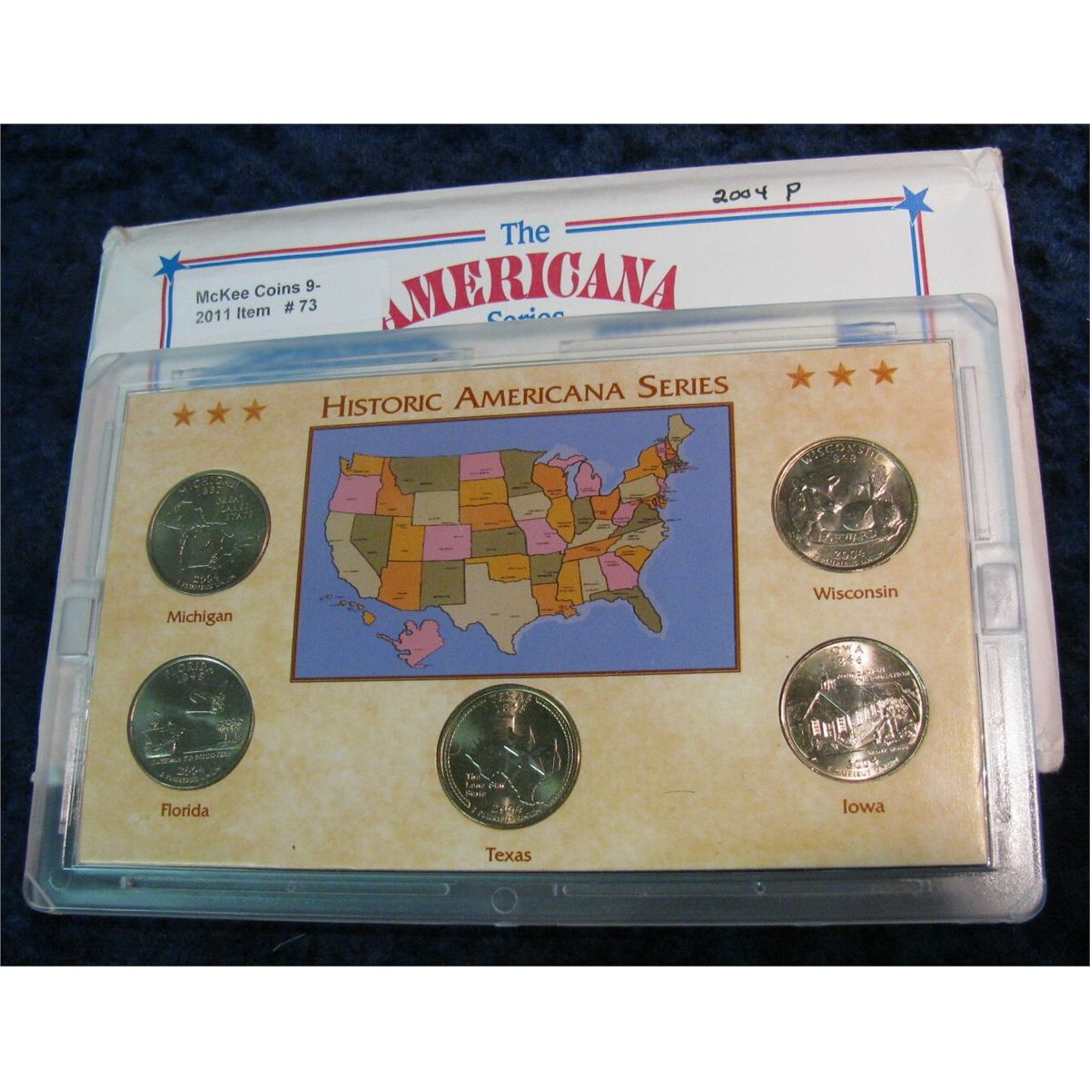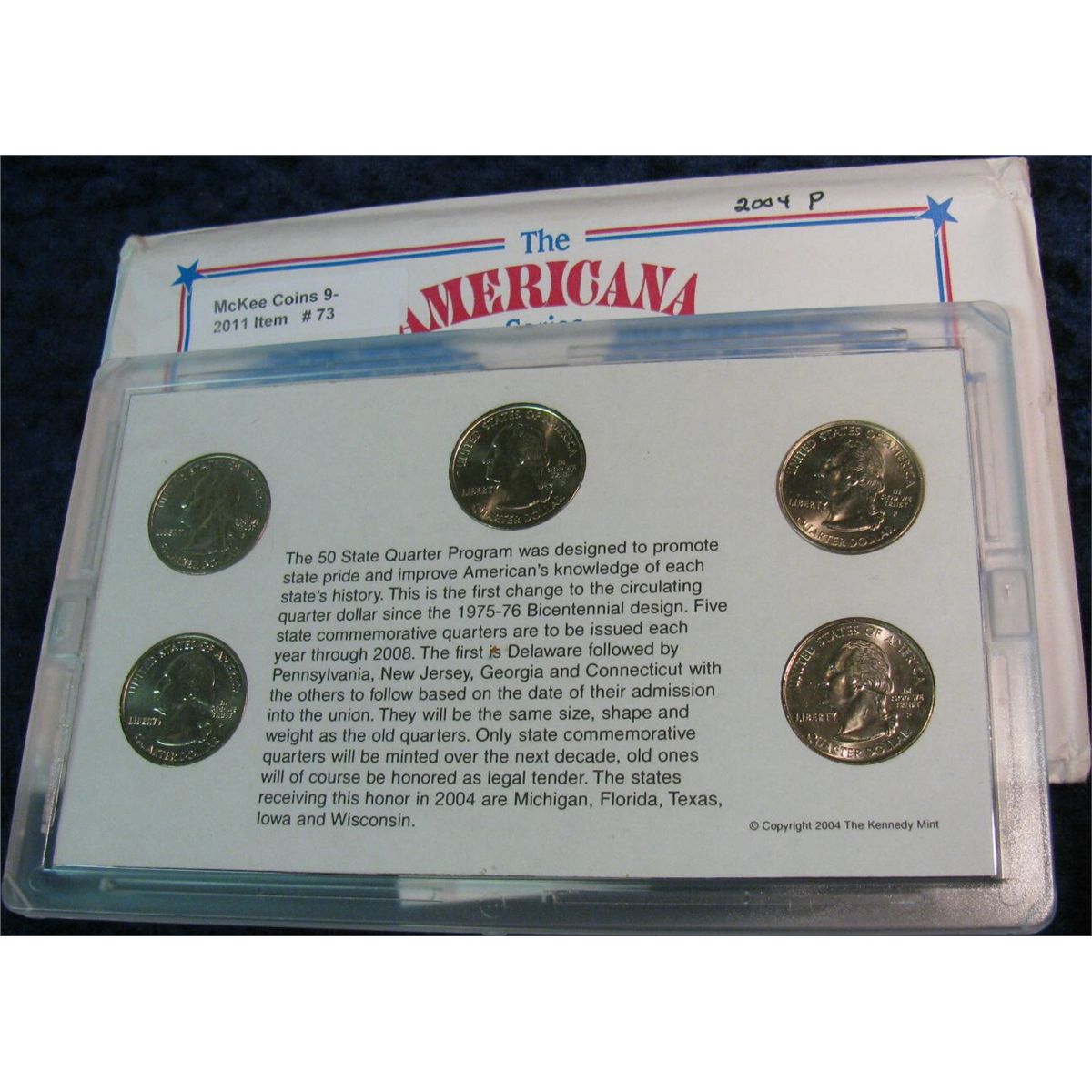 73. 2004 P Statehood Quarter Collection in hard plastic Kennedy Mint case. BU. Five-piece.