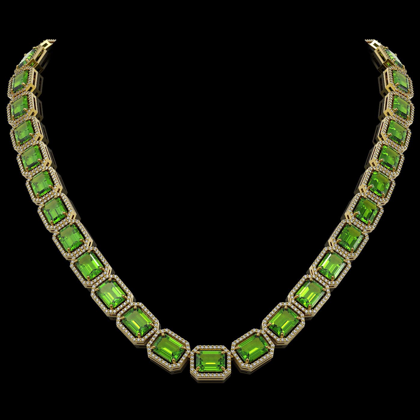 REF-888G2W - SKU: 41503 ---- 73.41 ctw Peridot & Diamond Micro Pave Halo Necklace 10k Yellow Gold