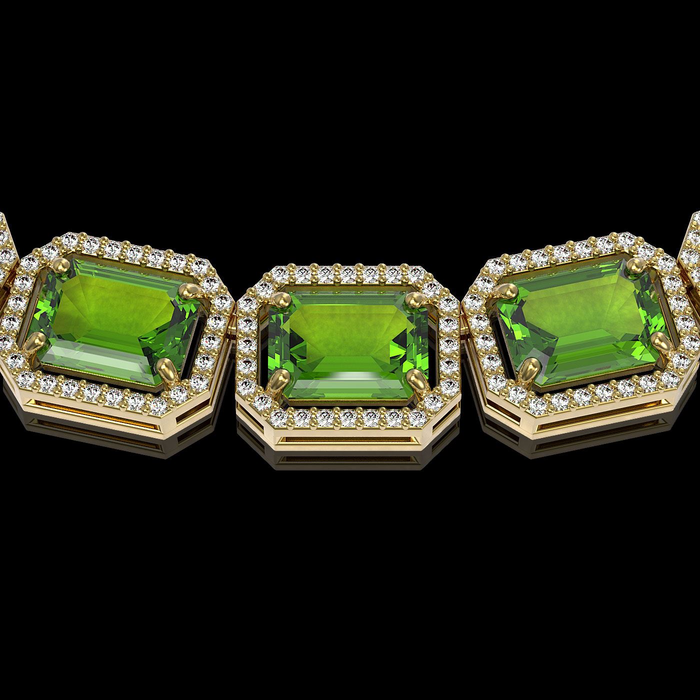SKU: 41503 ---- 73.41 ctw Peridot & Diamond Micro Pave Halo Necklace 10k Yellow Gold