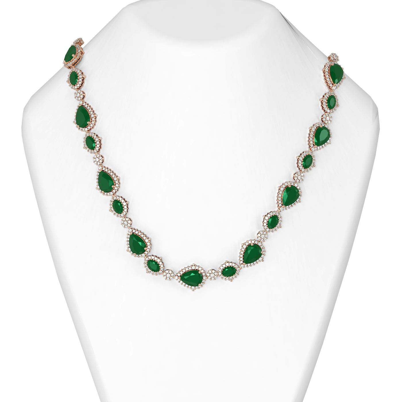 73.47 ctw Emerald & Diamond Necklace 18K Rose Gold