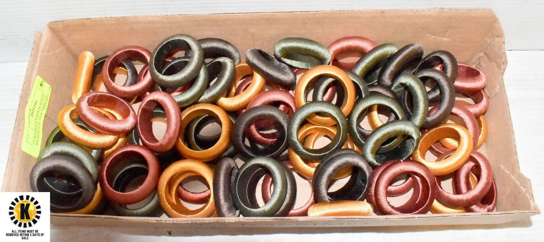73 WOODEN NAPKIN RINGS WRAPPED IN SILK THREAD