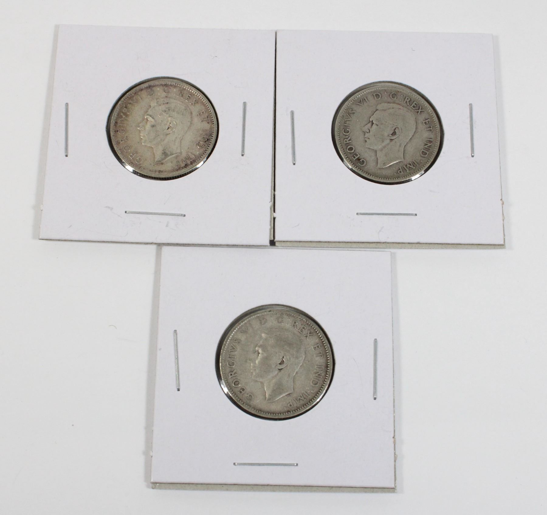 LOT OF 3 WW2 WORLD WAR TWO ERA KING GEORGE VI CANADA CANADIAN SILVER COIN CURRENCY 1900'S