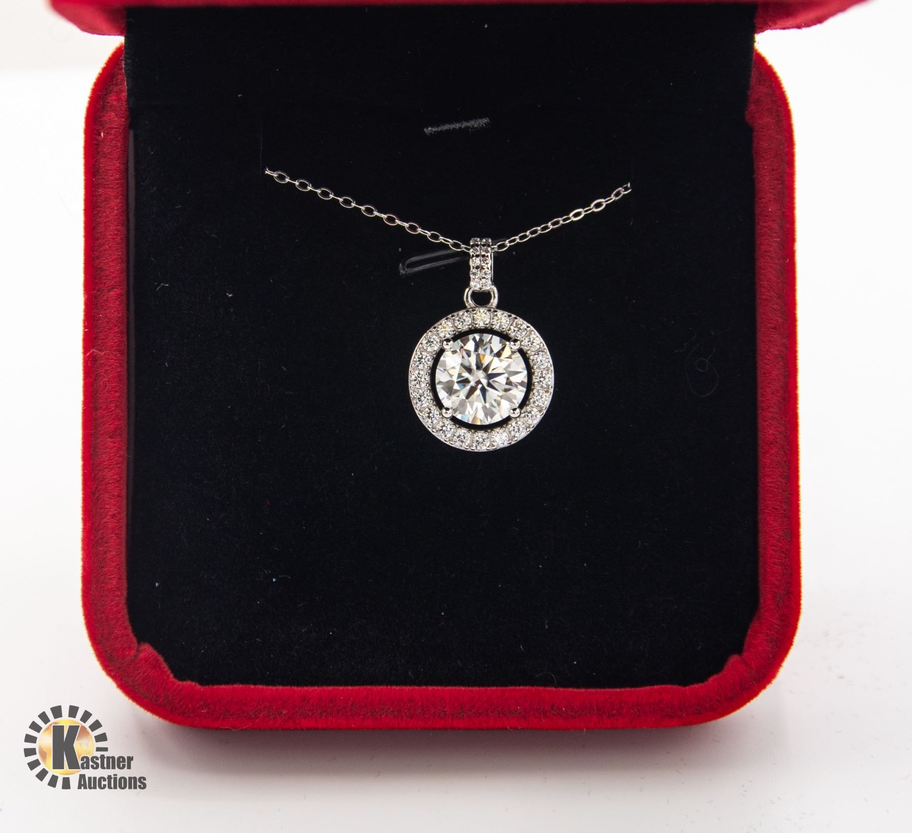 MOISSANITE STONE VVS D COLOR SET IN CENTER OF ROUND HALO SET IN 925 SILVER PENDANT RETAIL VALUE $1,500.00 **ALL ITEMS MUST BE REMOVED BY 5PM SATURDAY, OCTOBER 12TH 2024. ALL REMAINING ITEMS WILL BE SUBJECT TO A $6.00 PER DAY STORAGE CHARGE. ANY ITEMS REMAINING AFTER MONDAY, OCTOBER 27TH 2024 WILL BE CONSIDERED FORFEITED. NO REFUNDS WILL BE ISSUED FOR FORFEITED ITEMS. TO SCHEDULE A PICK UP APPOINTMENT CLICK HERE