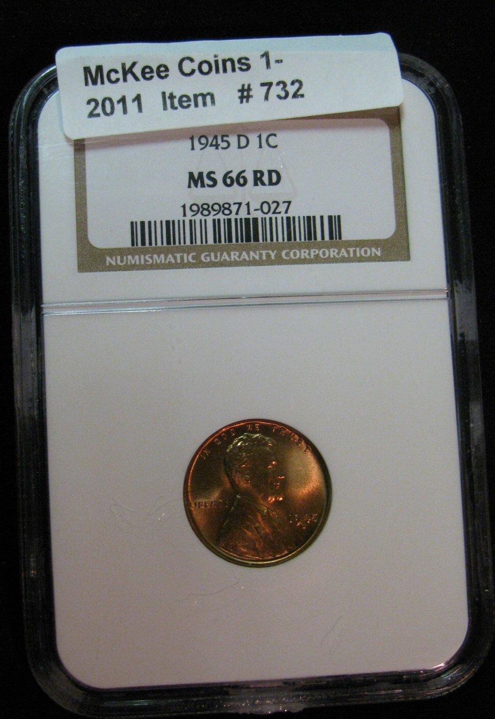 732. 1945 D Lincoln Cent. NGC slabbed MS 66 RD.