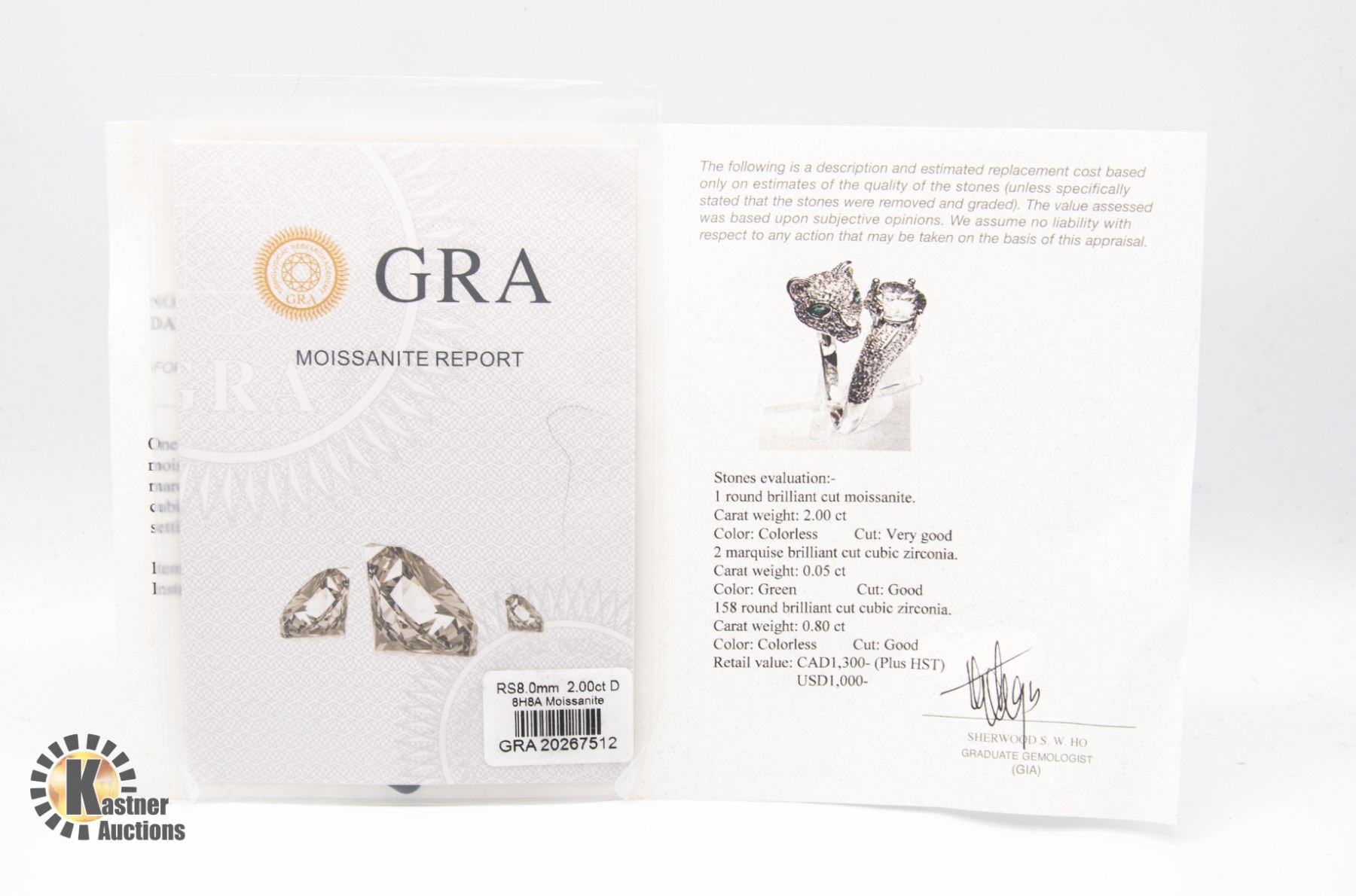 MOISSANITE STONE VVS D COLOR SET IN PANTHER SET IN 925 SILVER RING RETAIL VALUE $1,300.00 **ALL ITEMS MUST BE REMOVED BY 5PM SATURDAY, OCTOBER 12TH 2024. ALL REMAINING ITEMS WILL BE SUBJECT TO A $6.00 PER DAY STORAGE CHARGE. ANY ITEMS REMAINING AFTER MONDAY, OCTOBER 27TH 2024 WILL BE CONSIDERED FORFEITED. NO REFUNDS WILL BE ISSUED FOR FORFEITED ITEMS. TO SCHEDULE A PICK UP APPOINTMENT CLICK HERE