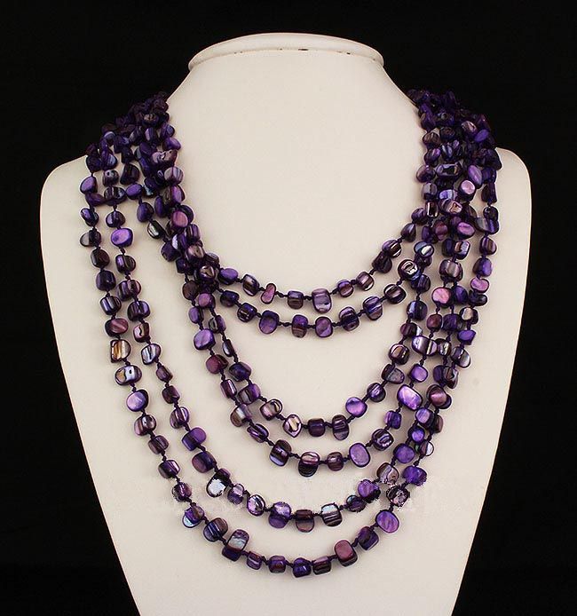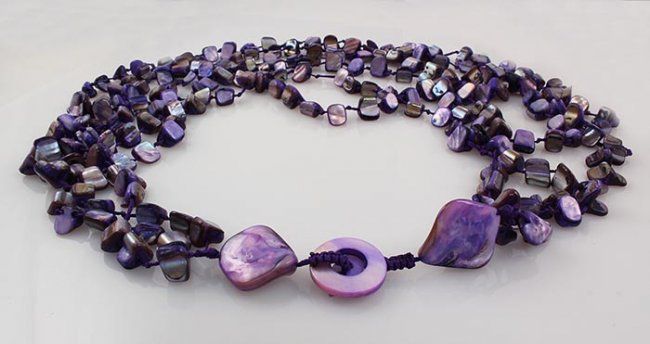 733.00CTW PURPLE 6 ROW MOTHER OF PEARL NECKLACE **|**|** 20 Inches Purple Dyed Color Beads Mother of Pearl Necklace with MOP Circle Clasp ; MSRP: $100