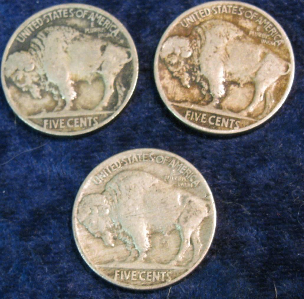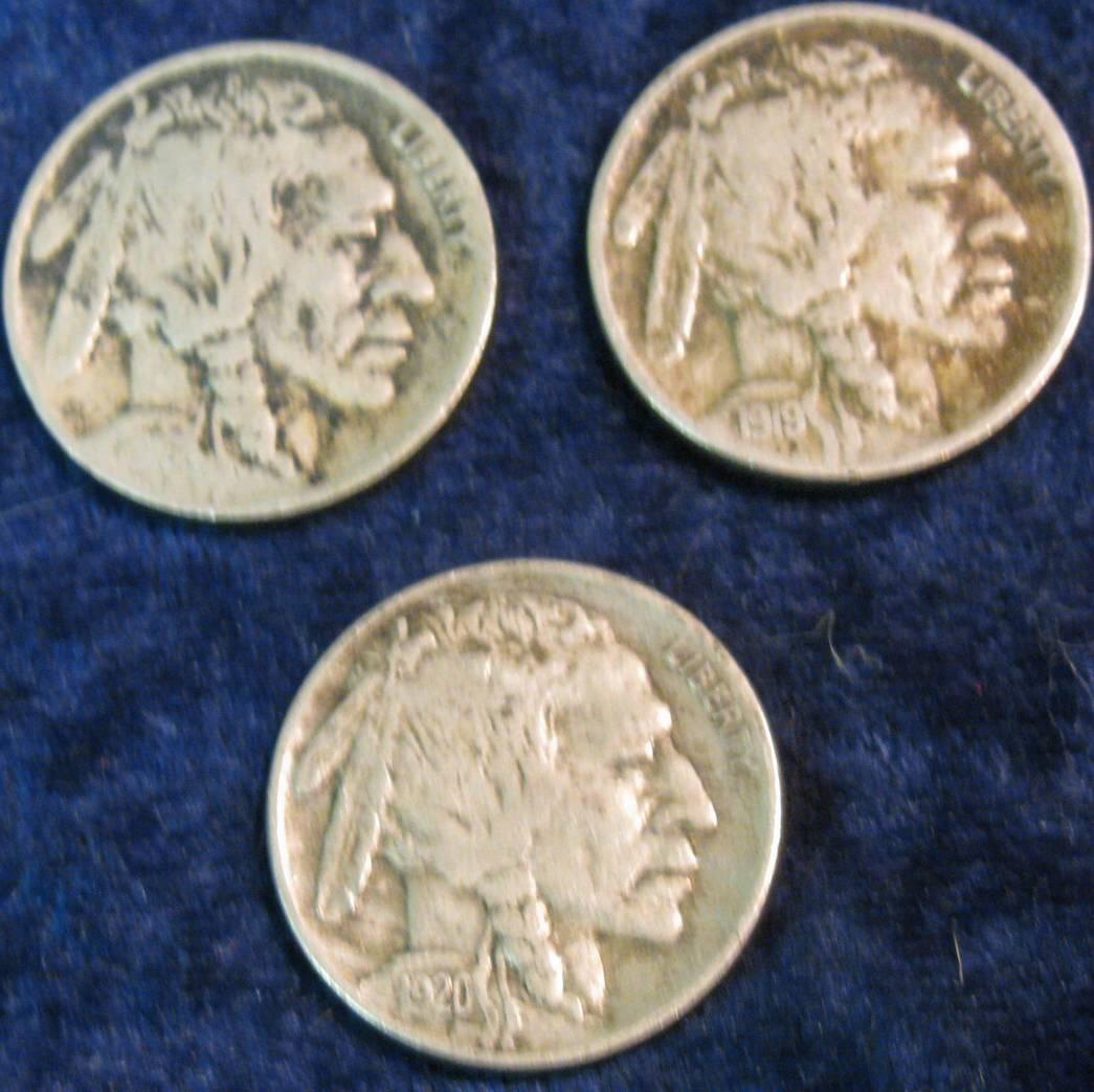 733. 1916P VG. 19P F, & 20P VF Buffalo Nickels.