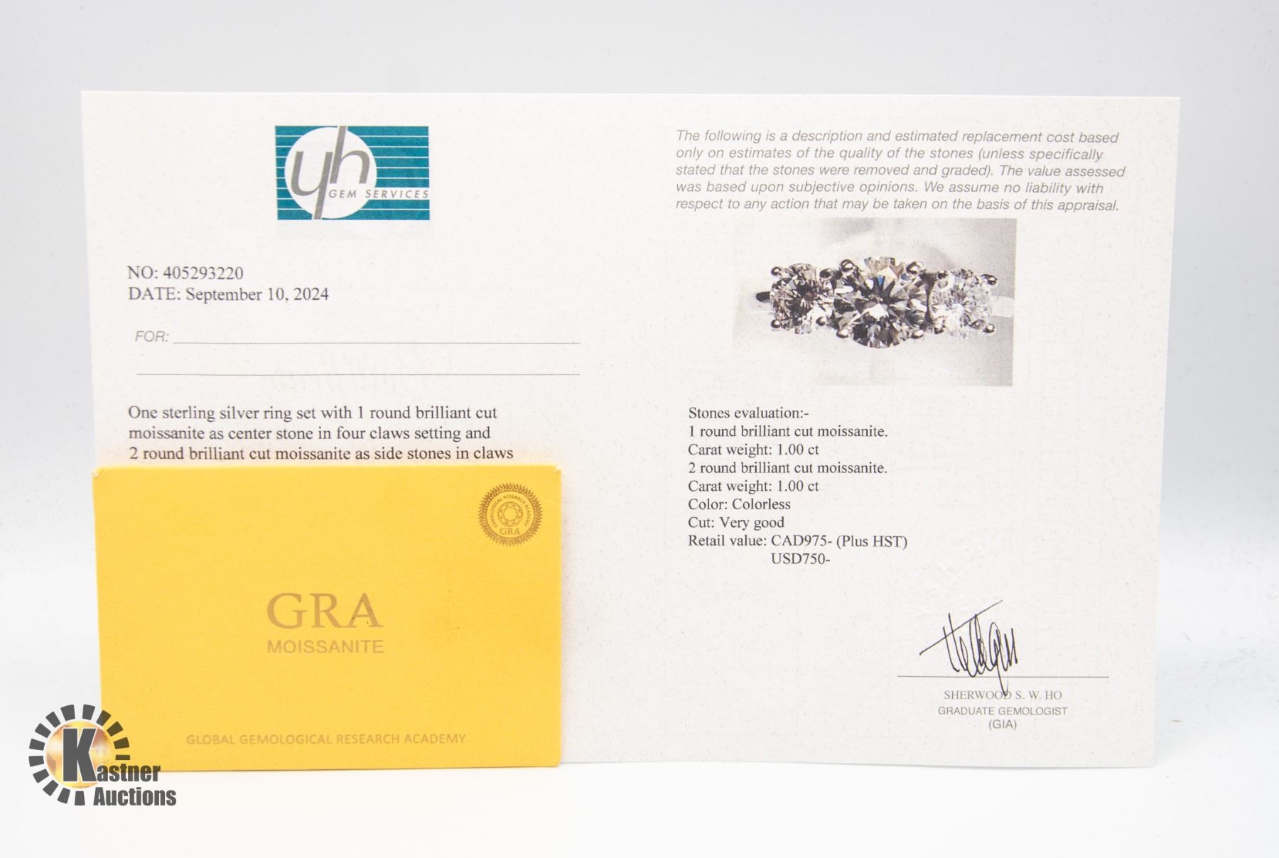 SET ON EITHER SIDE GRA CERTIFIED ROUND BRILLIANT CUT MOISSANITE STONES VVS D COLOR SET IN 925 SILVER RING SIZE 8 RETAIL VALUE $975.00 **ALL ITEMS MUST BE REMOVED BY 5PM SATURDAY, OCTOBER 12TH 2024. ALL REMAINING ITEMS WILL BE SUBJECT TO A $6.00 PER DAY STORAGE CHARGE. ANY ITEMS REMAINING AFTER MONDAY, OCTOBER 27TH 2024 WILL BE CONSIDERED FORFEITED. NO REFUNDS WILL BE ISSUED FOR FORFEITED ITEMS. TO SCHEDULE A PICK UP APPOINTMENT CLICK HERE