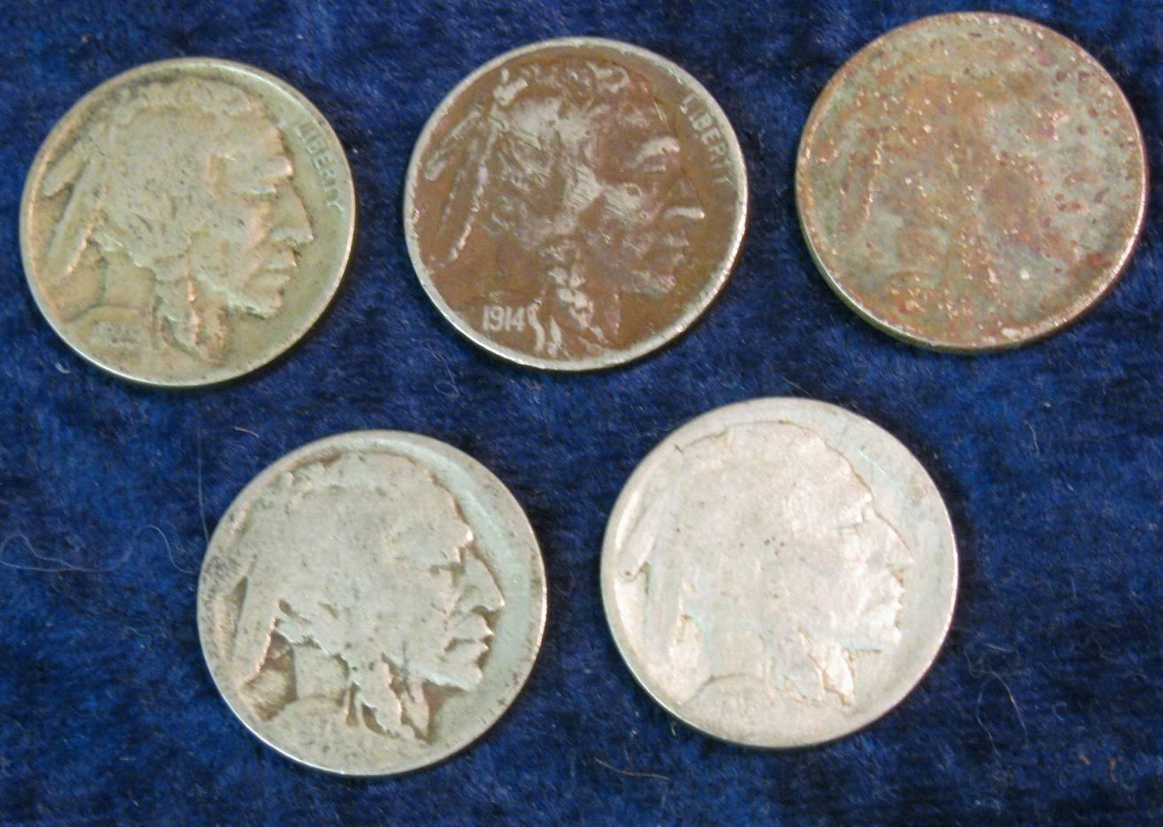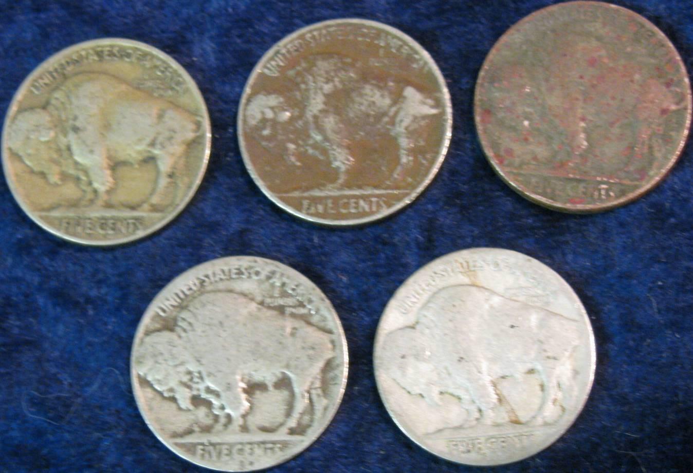 734. (5) Buffalo Nickels ranging in date 1914-25.