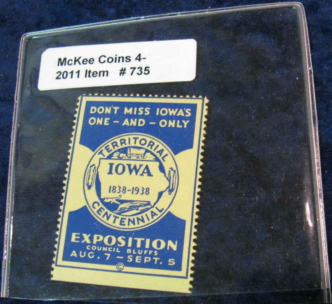 735. 1838-1938 Territorial Centennial Exposition Stamp. Mint. Uncancelled.