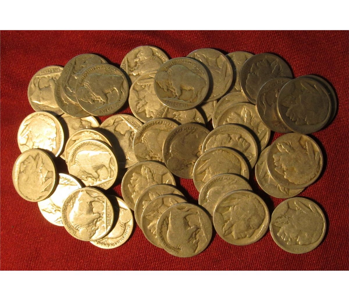 736. (40) Old Buffalo Nickels with Indian Heads, Butworn dates. Nice for making Jewelry or use a lit