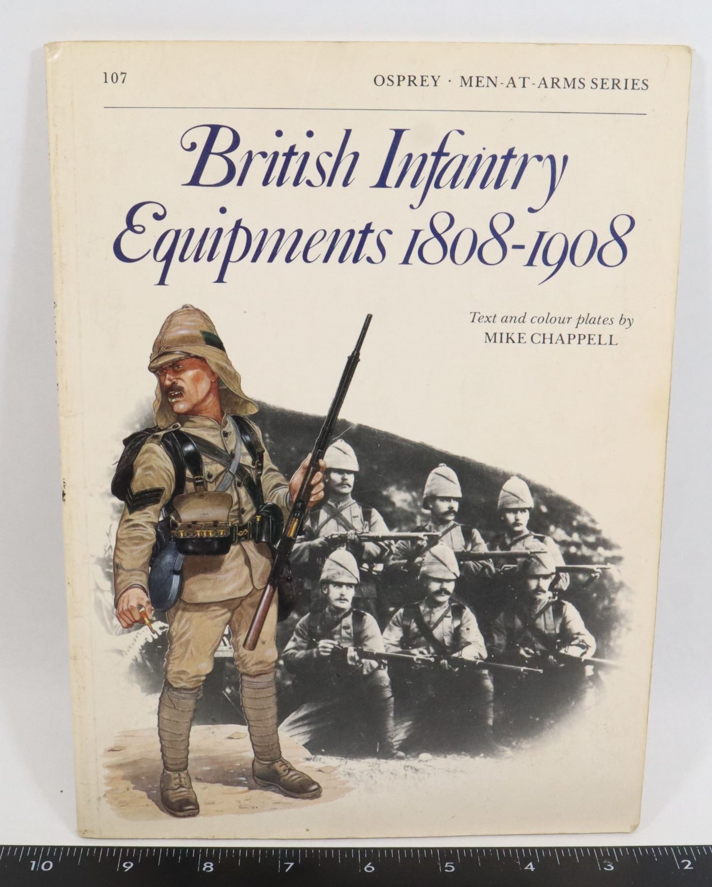 1989 HAS WEAR TO BACK CORNERS BRITISH INFANTRY EQUIPTMENT 1808-1908 REFERENCE BOOK OSPREY MEN AT ARMS SERIES SOFTCOVER