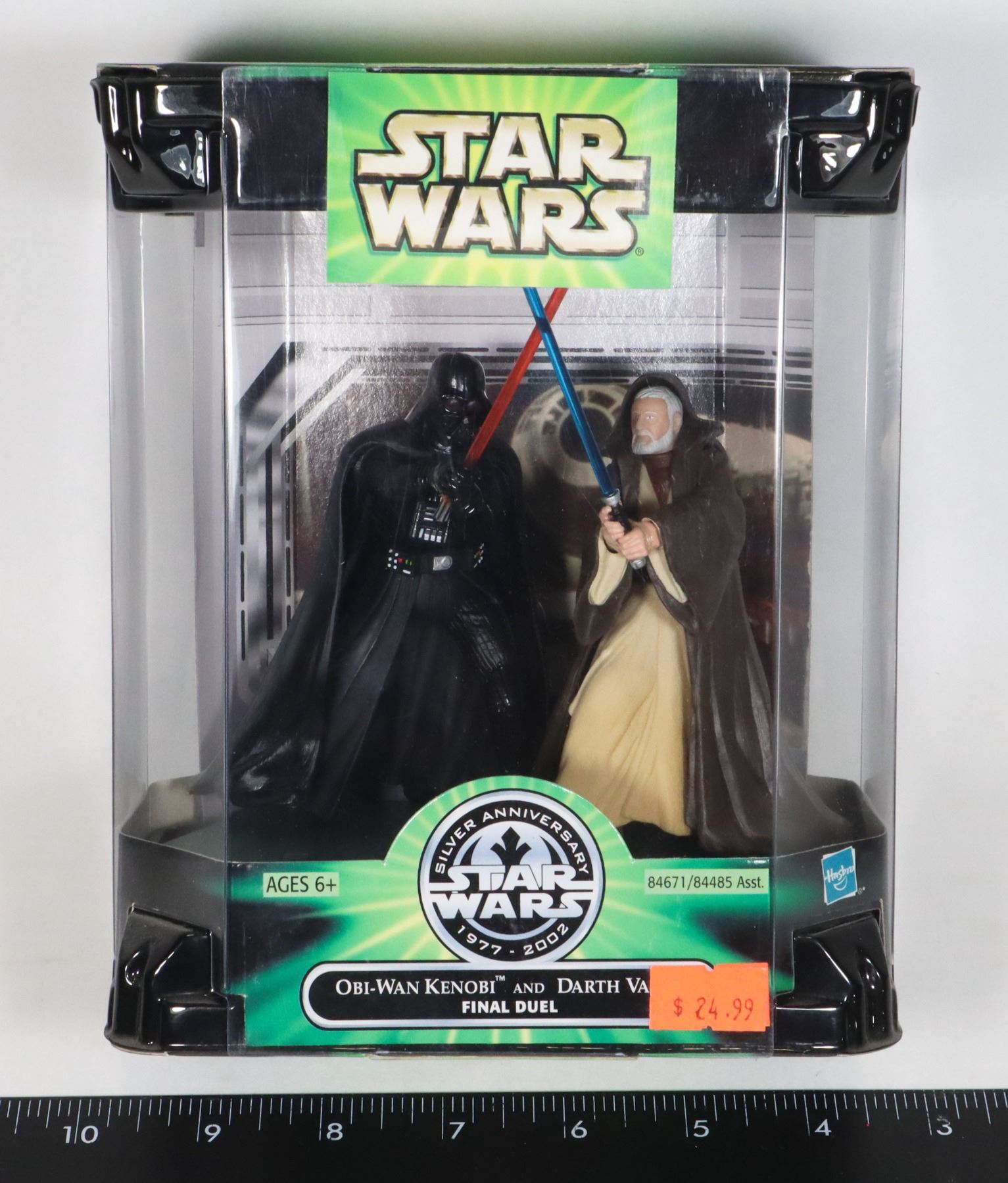 DARTH VADER OBI-WAN KENOBI 2002 BOXED FIGURE SET HASBRO SILVER ANNIVERSARY