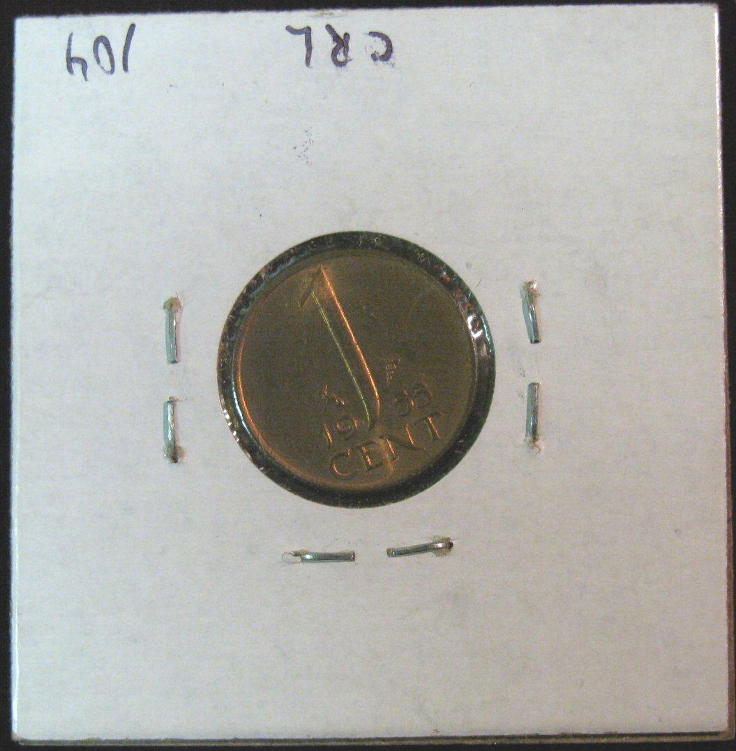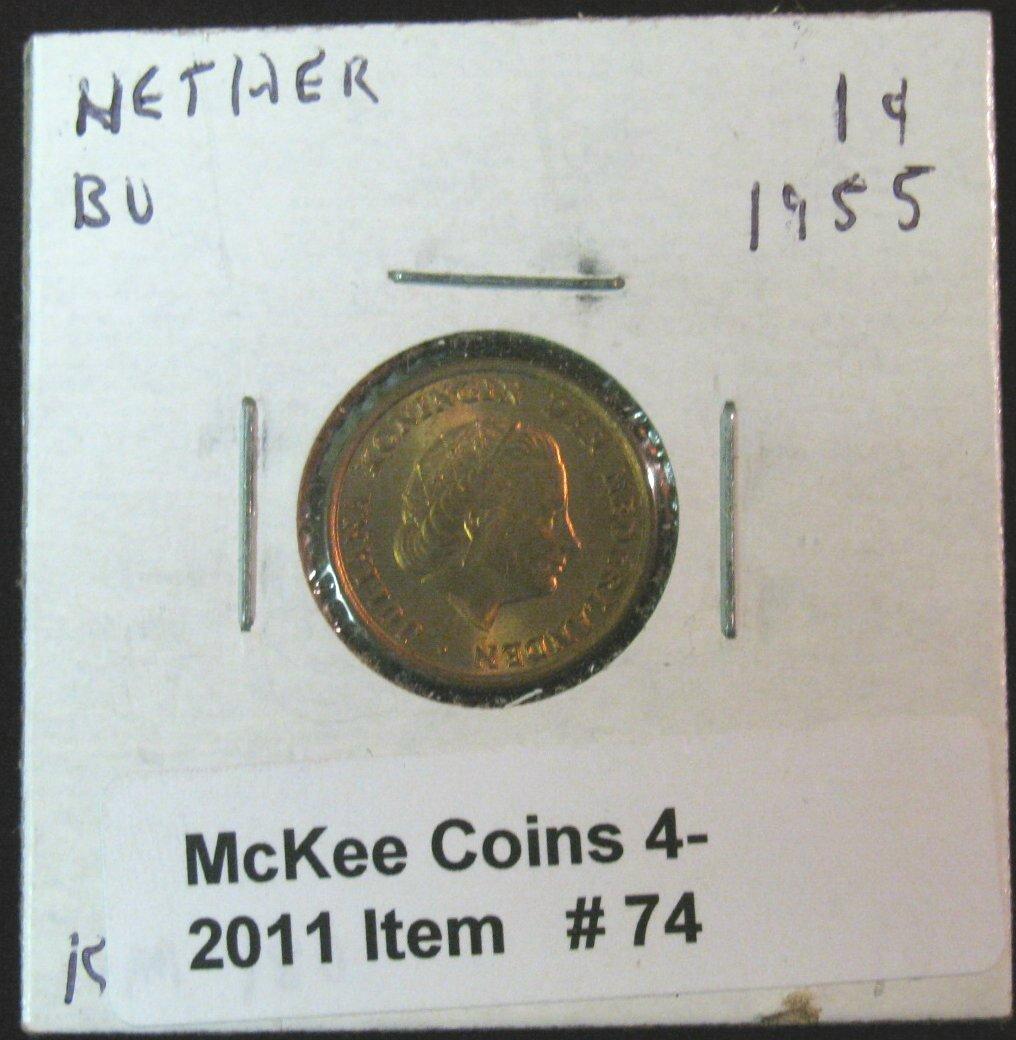 74. 1955 Netherlands One Cent Gem BU. KM 180.