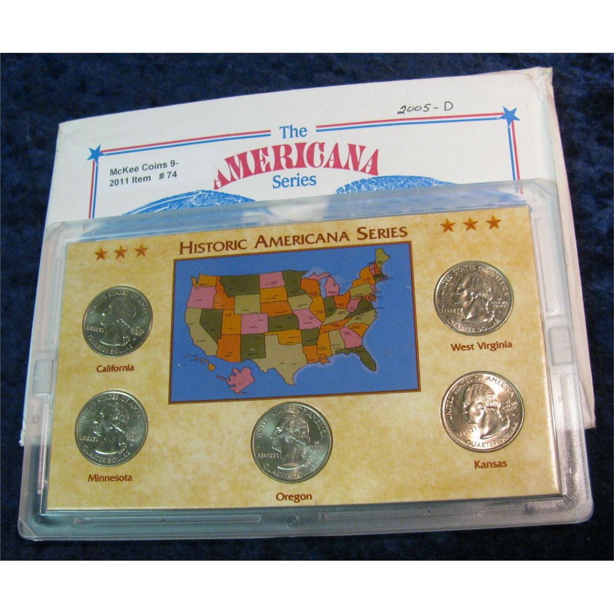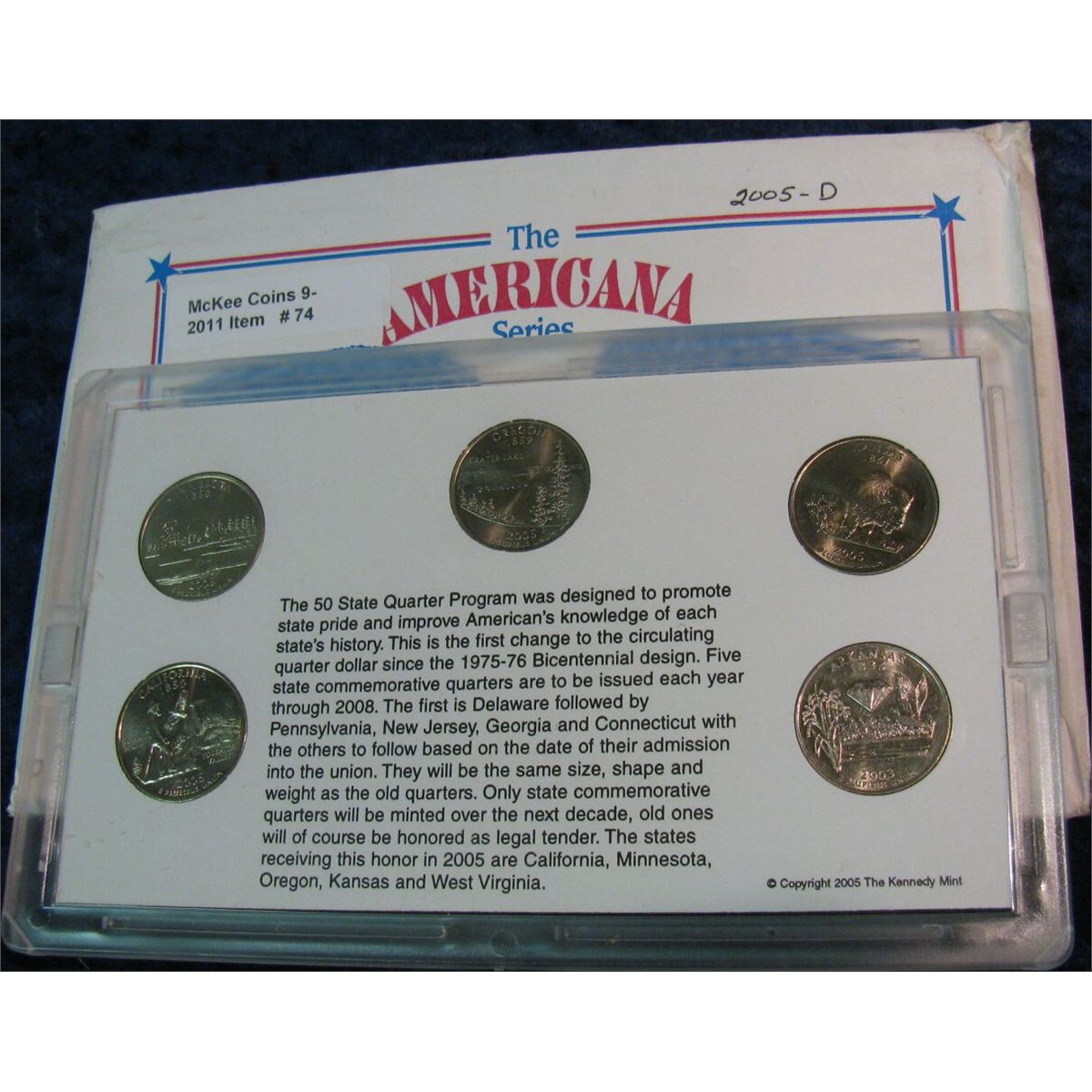 74. 2005 D Statehood Quarter Collection in hard plastic Kennedy Mint case. BU. Five-piece.