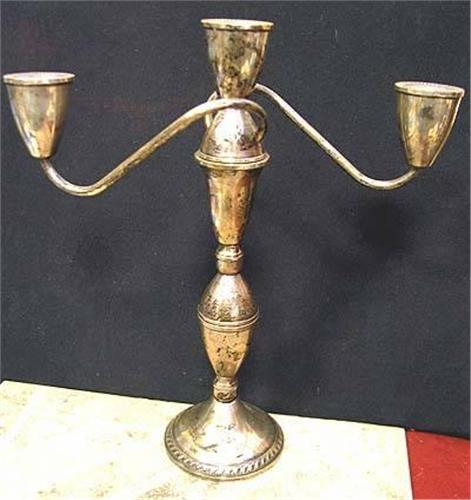 74.5oz Sterling Weighted Convertible Candelabra. Will accommodate three taper candles.
