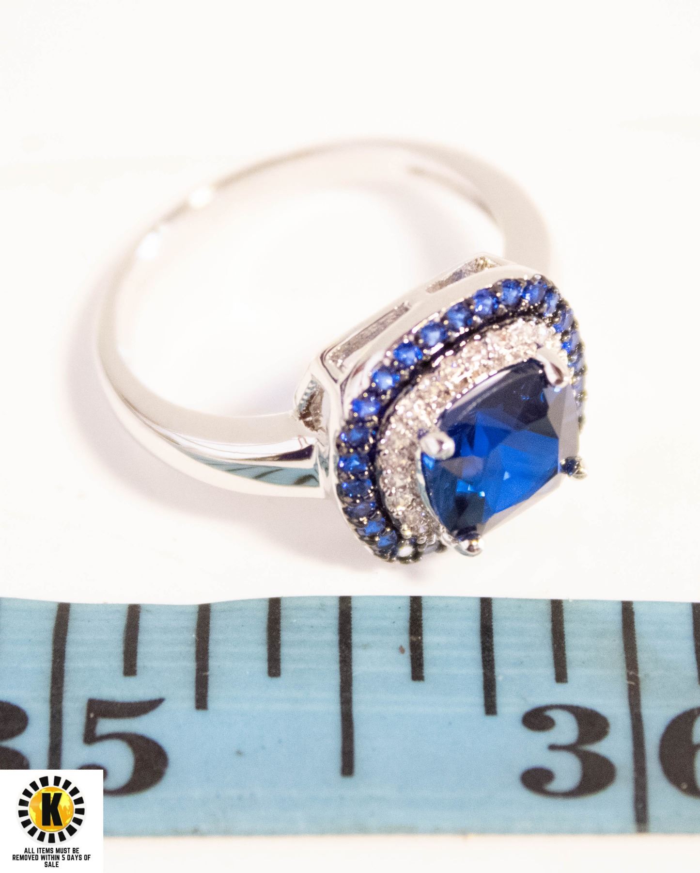 STONE HALO SURROUNDED BY LIGHT BLUE STONED HALO SIZE 8.5