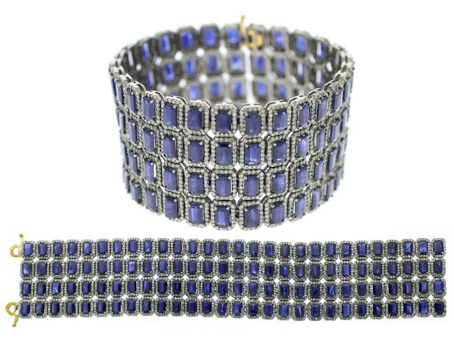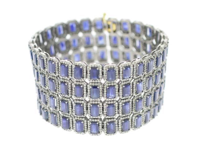 BLUE SAPPHIRE AND DIAMOND BRACELET/Diamond Color & Clarity:G-H/SI1-SI3/Diamond Count 1:/Diamond 1 TCW:14.56/Diamond Color & Clarity 2:/Diamond Count 2:/Diamond 2 TCW:/Gemstone Count 1:/Gemstone TCW 1:60.14/Gemstone Dimension:/Gemstone TCW 2:/Metal Type 1:14k Gold Yellow Gold //Weight Gram:11.54&0.925 Silver Sterling Silver Weight Gram:59.44/Gross Weight:74.38