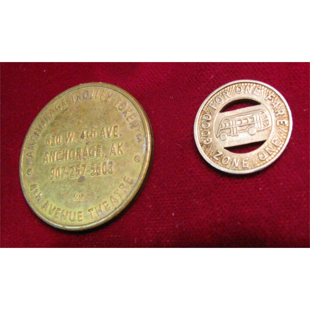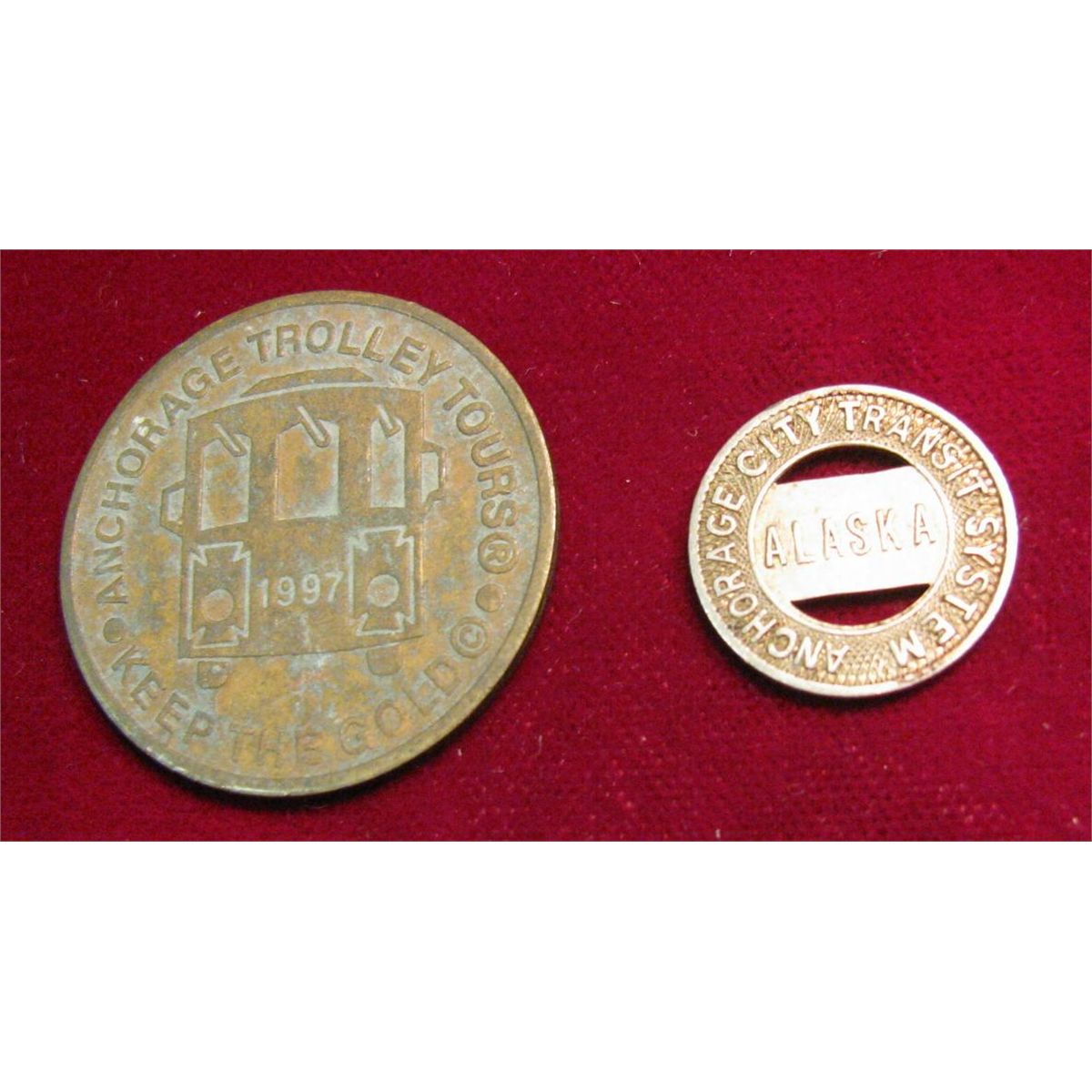 74. Anchorage City Transit System Alaska. Token & 1997 Anchorage Trolley Token. Brass.