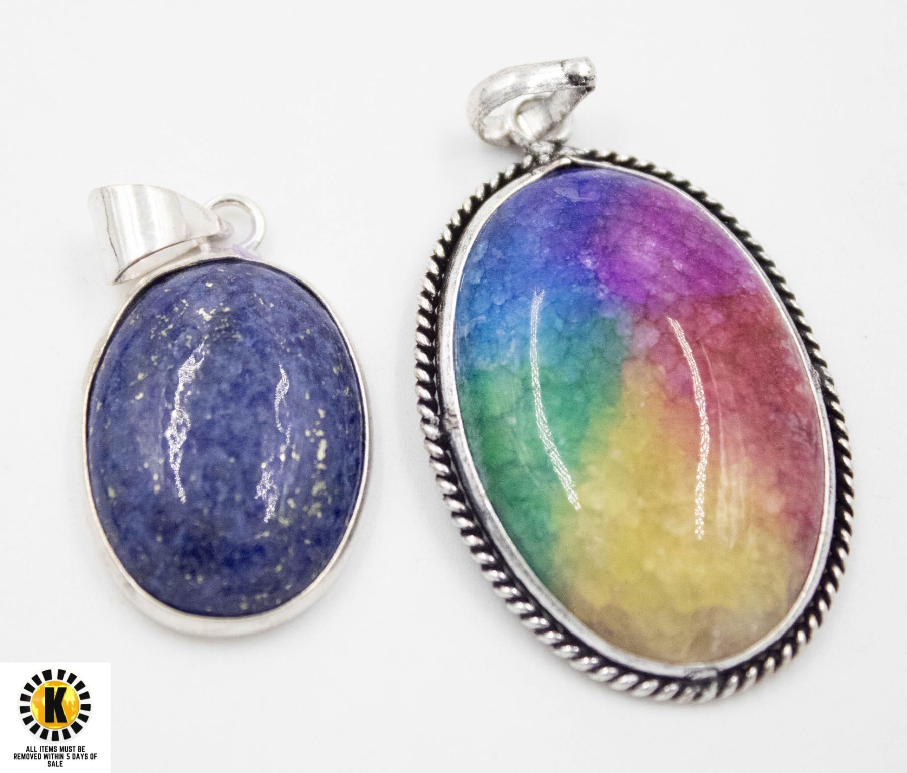 #74-NATURAL RAINBOW SOLAR QZ LAPIZ LAZULI PENDANT