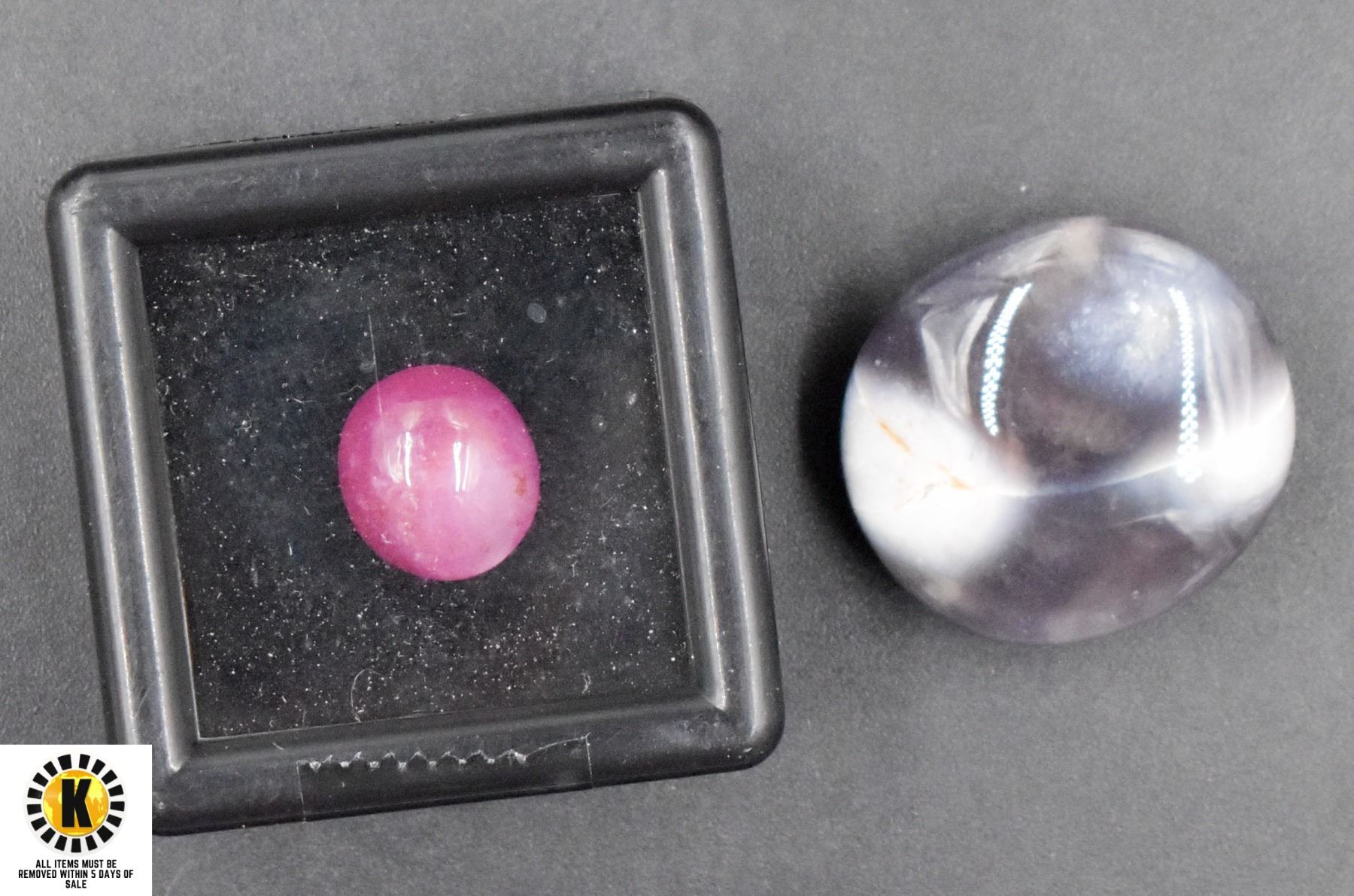 UNTREATED BROWN CHALCEDONY 18.7X20.6MM/RUBY HEATED CLASS FILLED 8.7 X 9.6MM