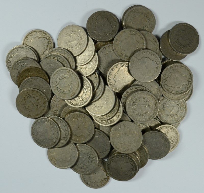 ( 74 ) PIECES CIRCULATED LIBERTY "V" NICKELS 1912 AND OLDER, NICE MIX OF DATES