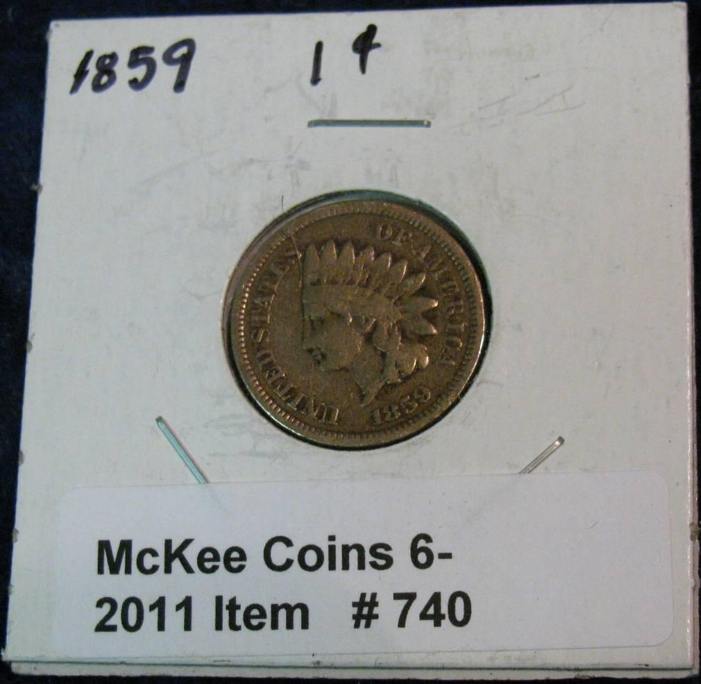 740. 1859 U.S. Indian Head Cent. VG-8.