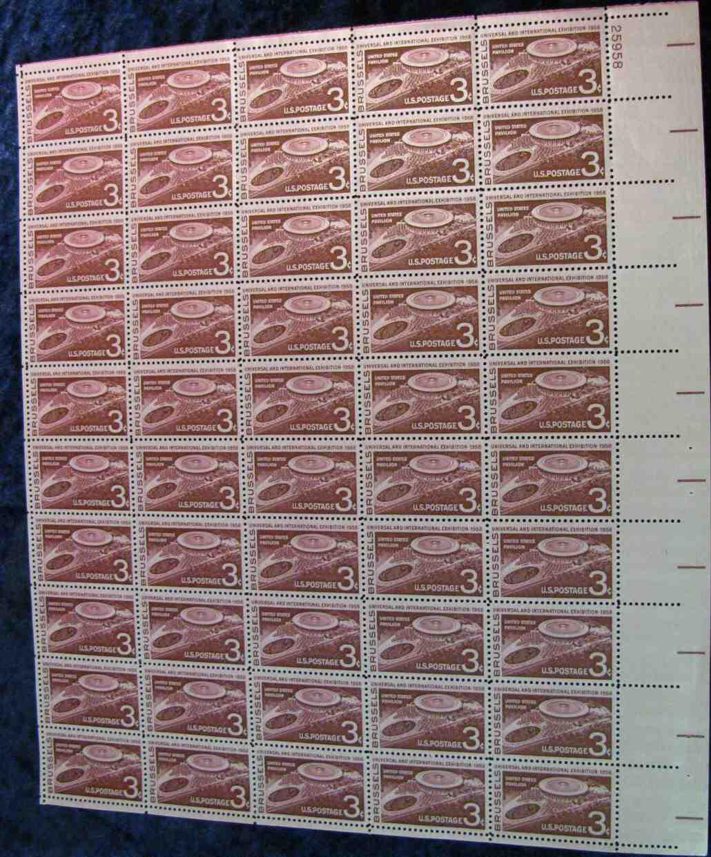 742. Original Mint Sheet of 1958 Universal & International Exhibition .03c Stamps.