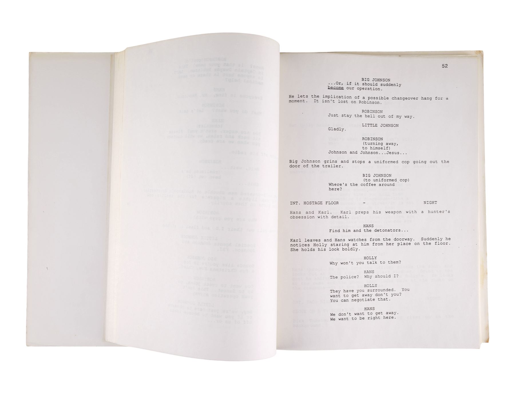 DIE HARD (1988) - Bound "Nothing Lasts Forever" First Draft Script - A bound "Nothing Lasts Forever" first draft script from John McTiernan's Die Hard. Officer John McClane (Bruce Willis) worked to take down Hans Gruber (Alan Rickman) and his men who infiltrated a Christmas party at his wife's company headquarters.
