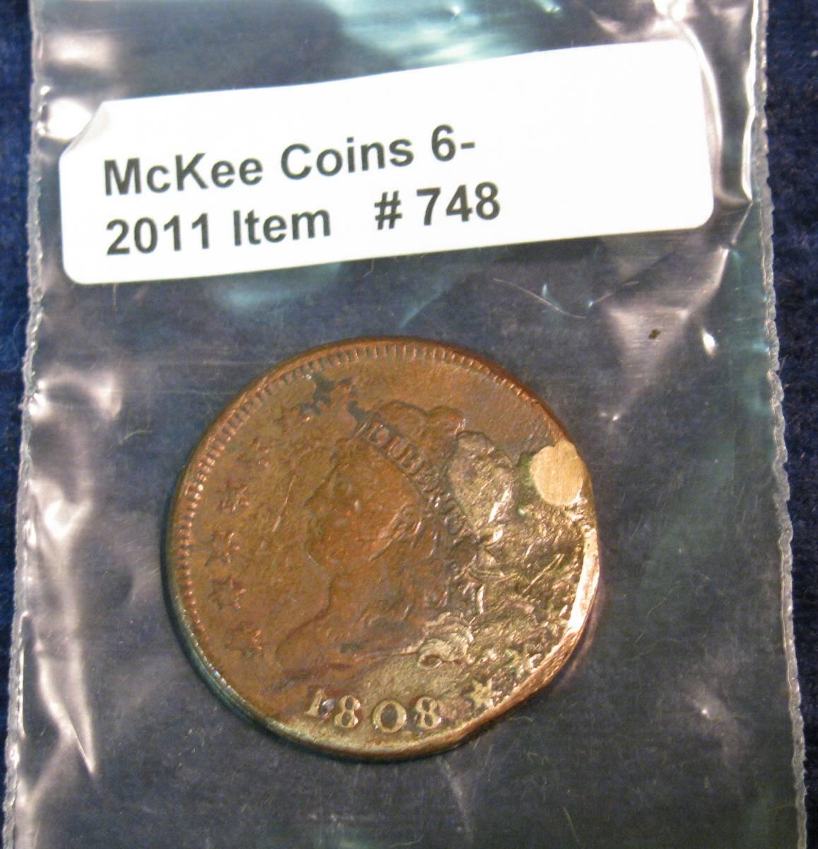 748. 1808 U.S. Large Cent. Some damage.