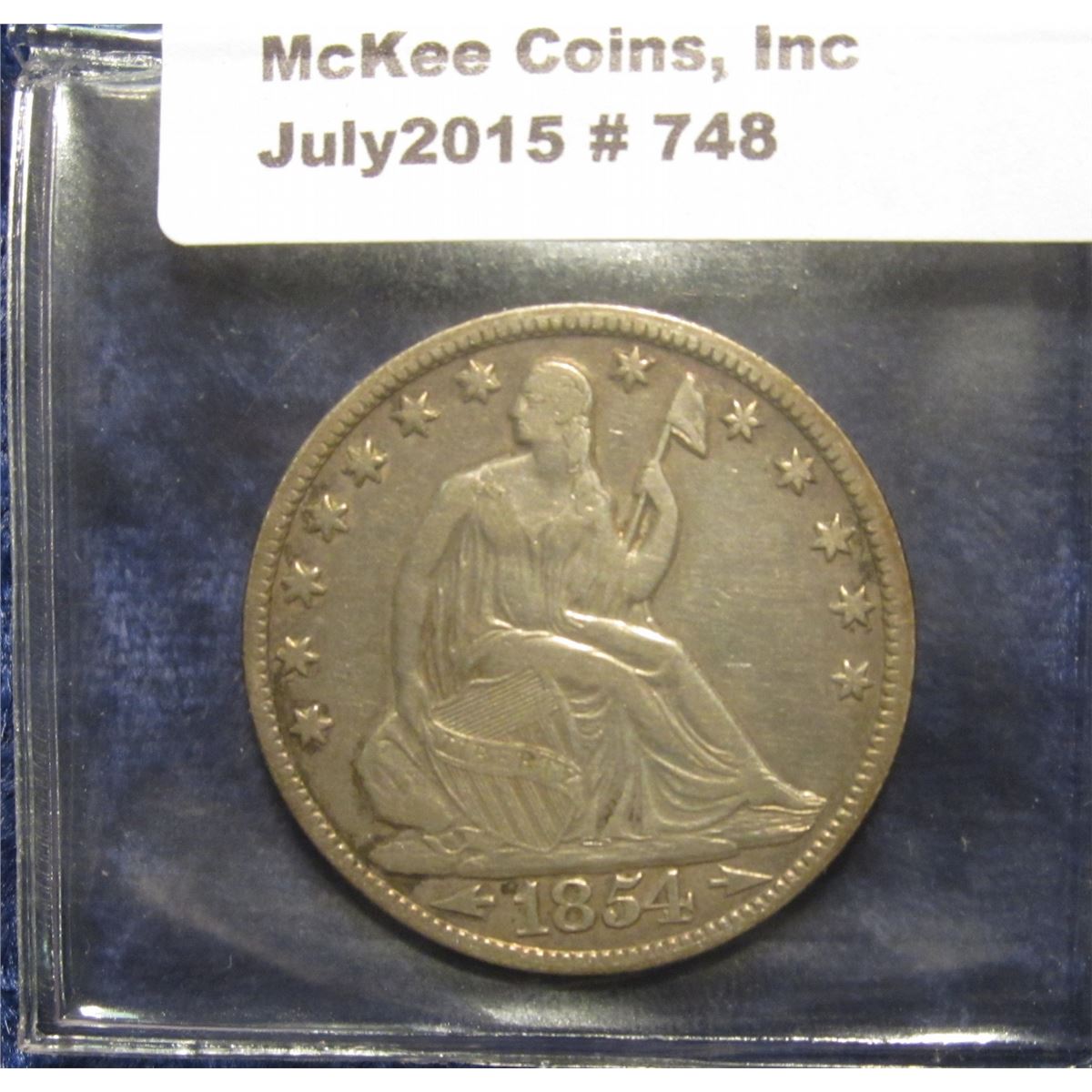 748. 1854 O Arrows U.S. Seated Liberty Half Dollar. EF 40. Nice and original. Red Book value $130.00.