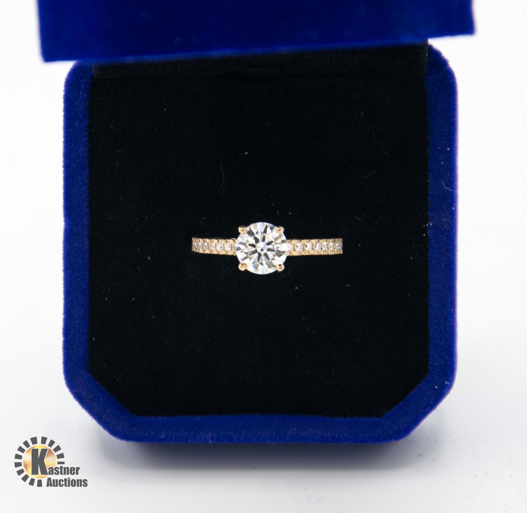 ROUND BRILLIANT CUT MOISSANITE STONE VVS D COLOR WITH 0.20 CT MOISSANITE STONES IN SHANK RING SIZE 5 **ALL ITEMS MUST BE REMOVED BY 5PM SATURDAY, OCTOBER 12TH 2024. ALL REMAINING ITEMS WILL BE SUBJECT TO A $6.00 PER DAY STORAGE CHARGE. ANY ITEMS REMAINING AFTER MONDAY, OCTOBER 27TH 2024 WILL BE CONSIDERED FORFEITED. NO REFUNDS WILL BE ISSUED FOR FORFEITED ITEMS. TO SCHEDULE A PICK UP APPOINTMENT CLICK HERE