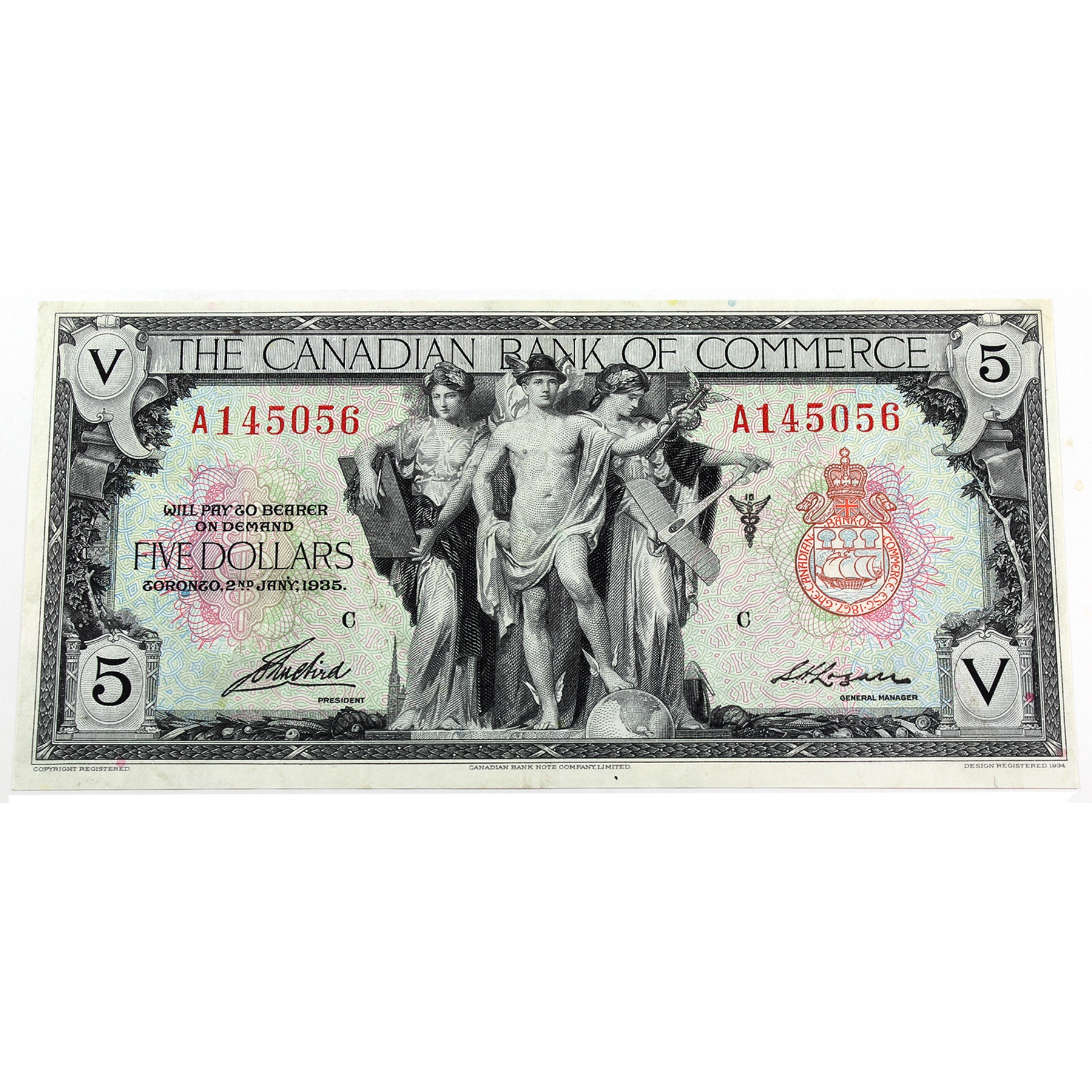 75-18-02 1935 $5 Canadian Bank of Commerce VF20 Aird-Logan SN: A145056 Check Letter C