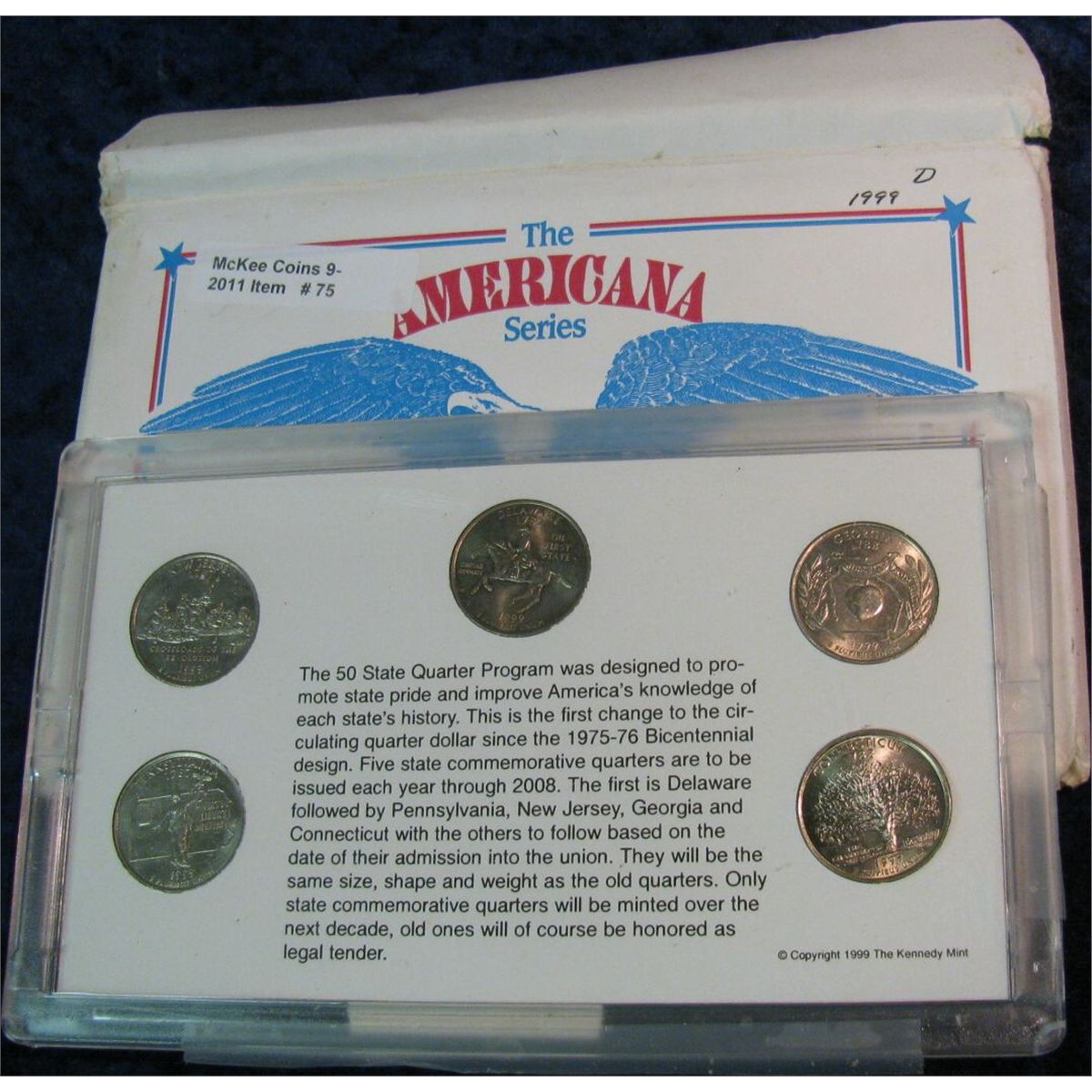 75. 1999 D Statehood Quarter Collection in hard plastic Kennedy Mint case. BU. Five-piece.